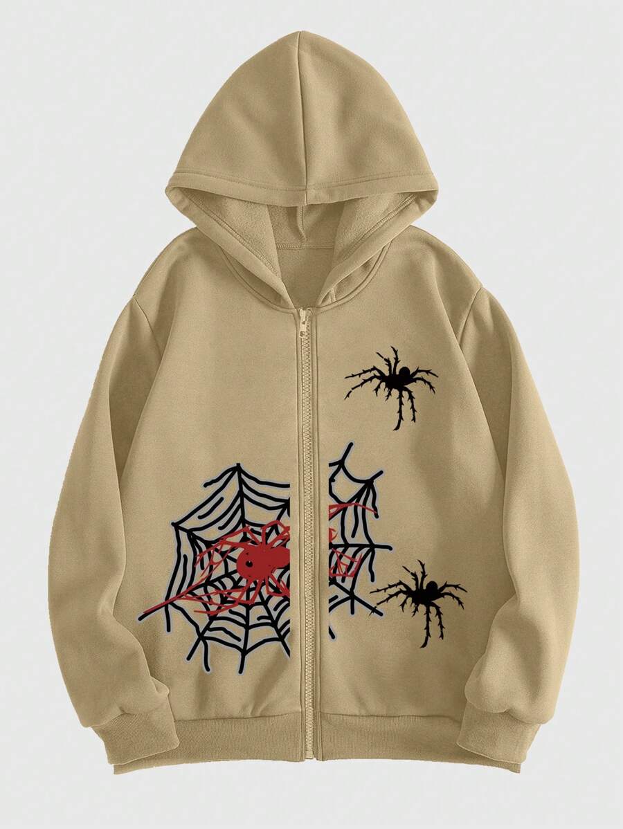 Goth Homme Sweat-Shirt À Capuche Imprimé Toile D'araignée Zippé À Doublure Thermique