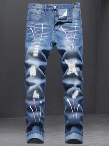 Homme Jean déchiré à imprimé encre d'éclaboussure