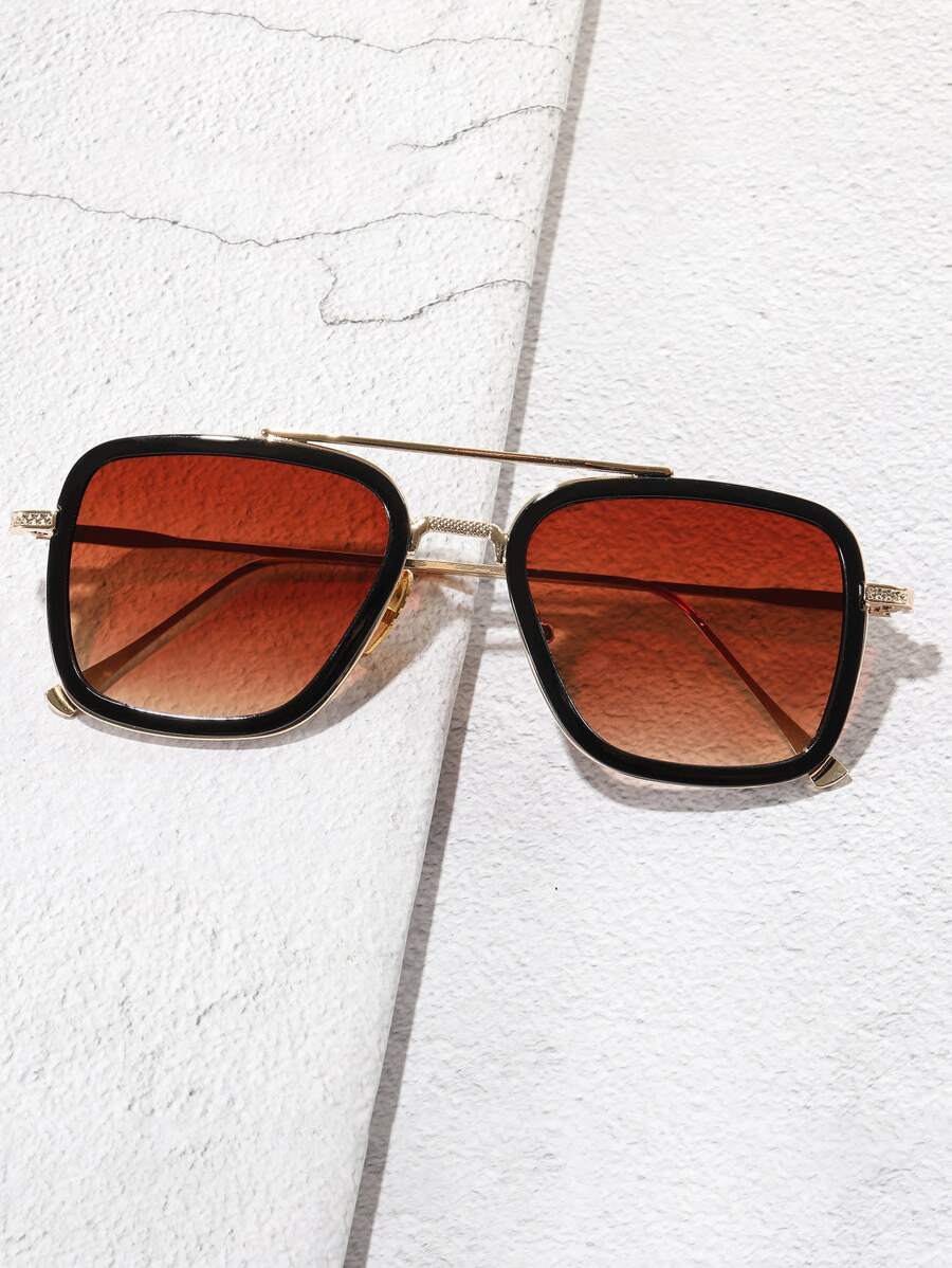 Lunettes carrées à double branche en métal à la mode pour hommes