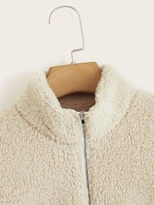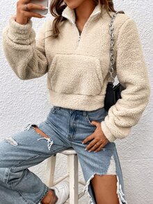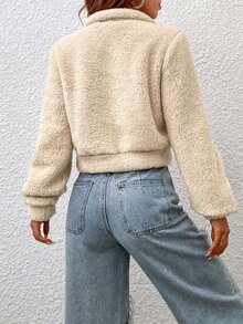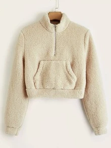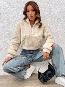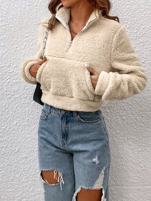 Sweat-shirt zippé à poche kangourou en tissu duveteux