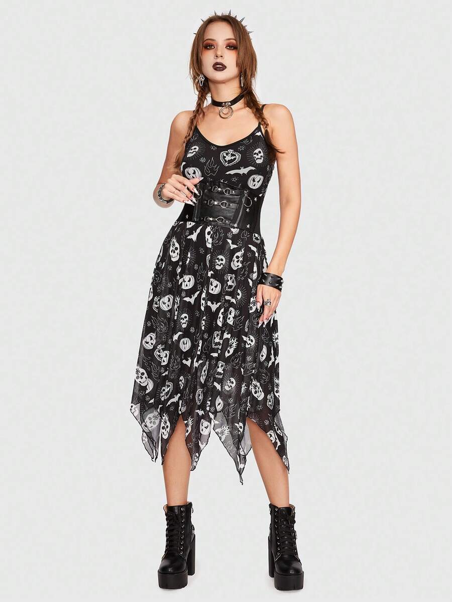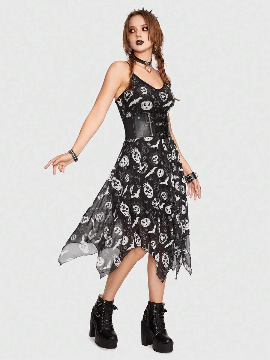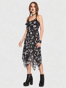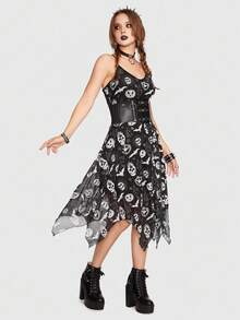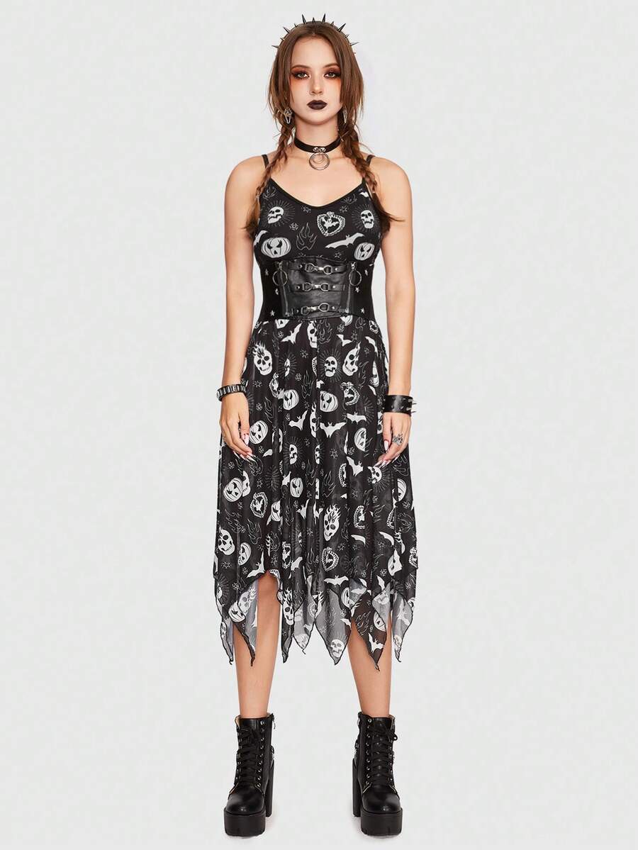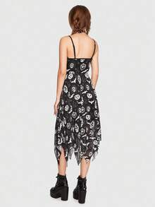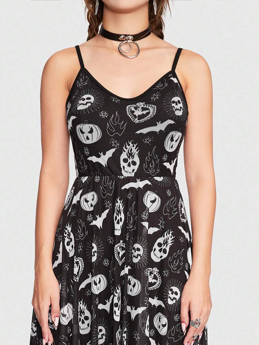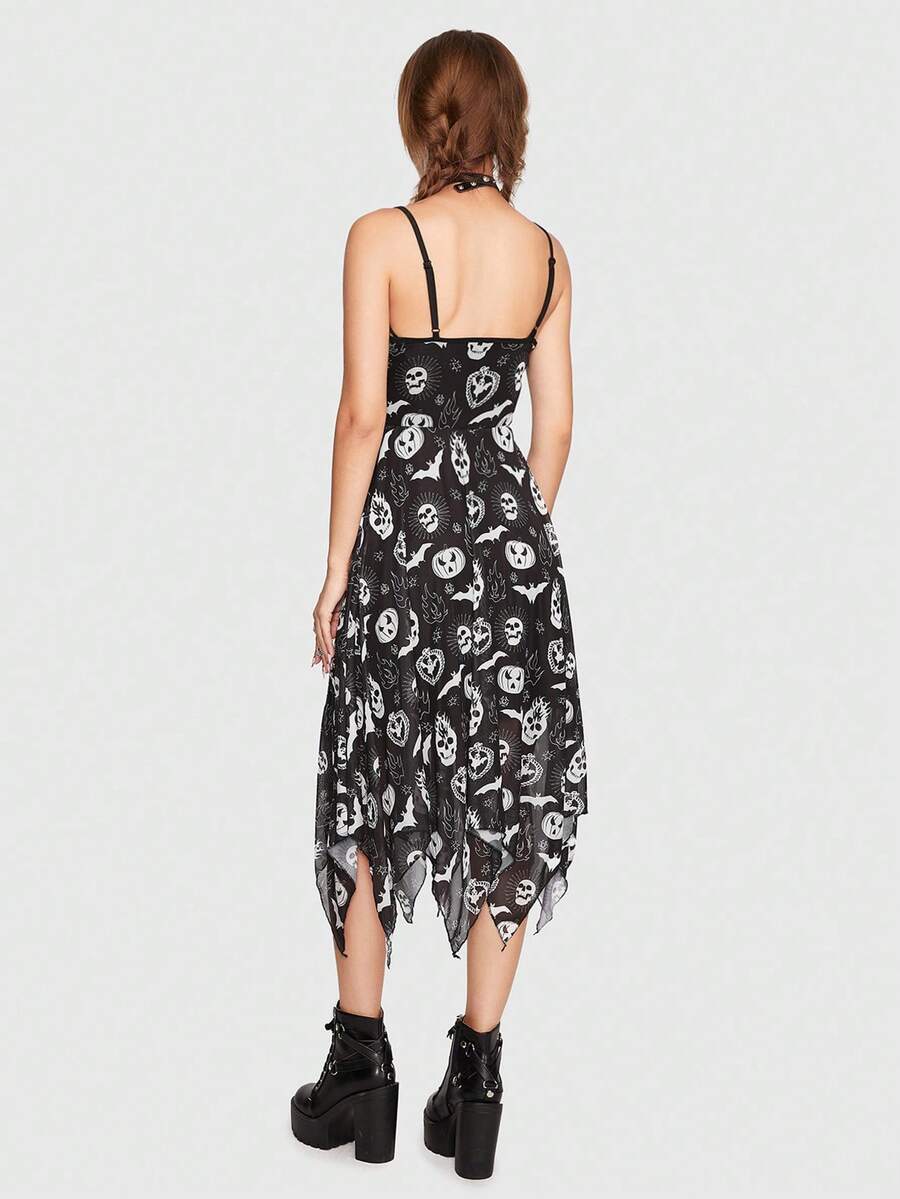 Goth Robe À Fines Brides Imprimé Halloween Asymétrique