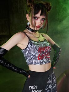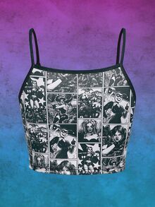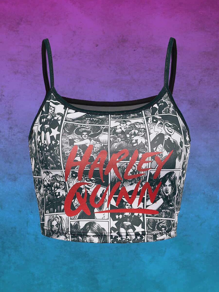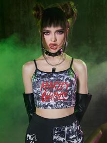 Harley Quinn | ROMWE Top à fines brides à motif figure à lettres à liseré contrastant