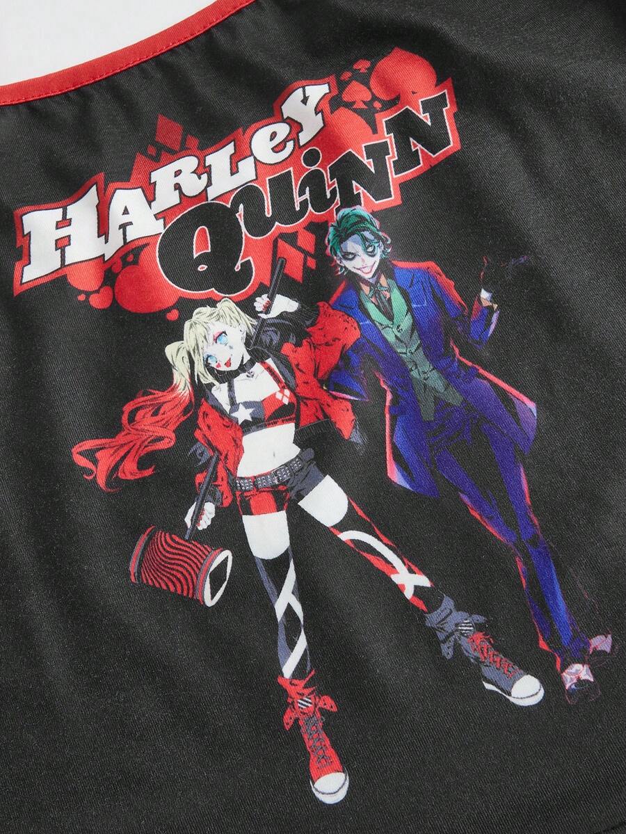 Harley Quinn | ROMWE Ensemble De Pyjama Lettre Et Figure À Liseré Contrastant