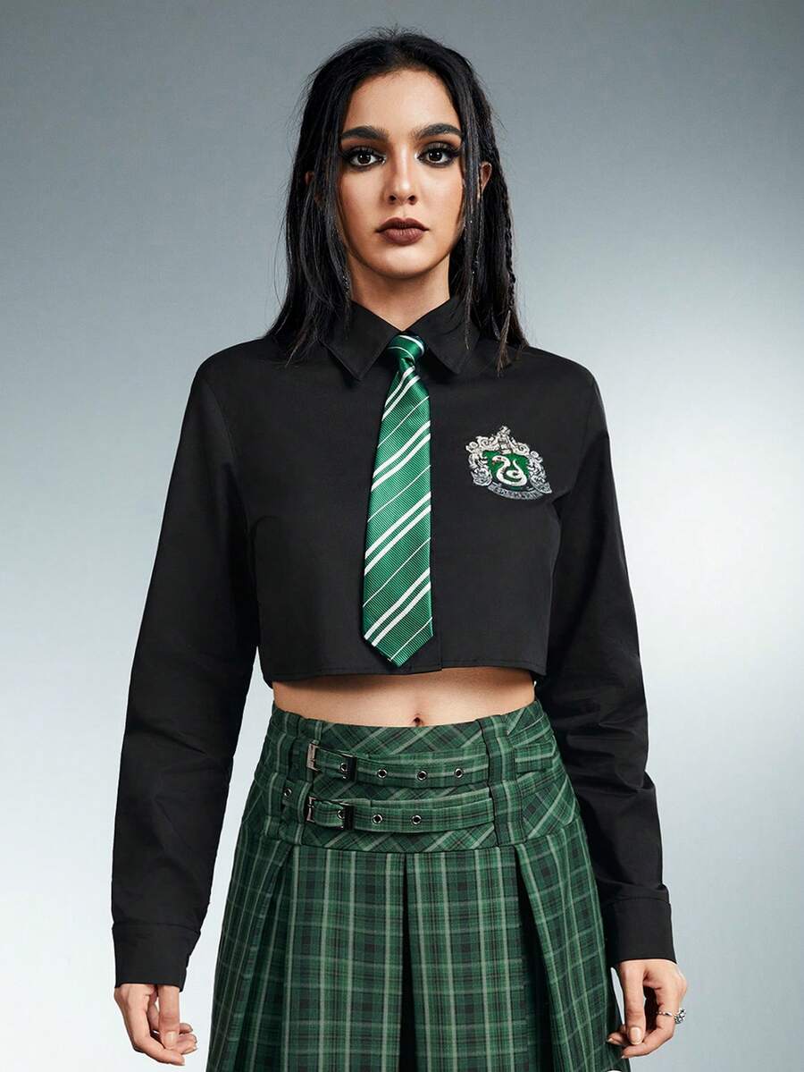 Harry Potter | ROMWE Chemise récolte style maison avec cravate rayée