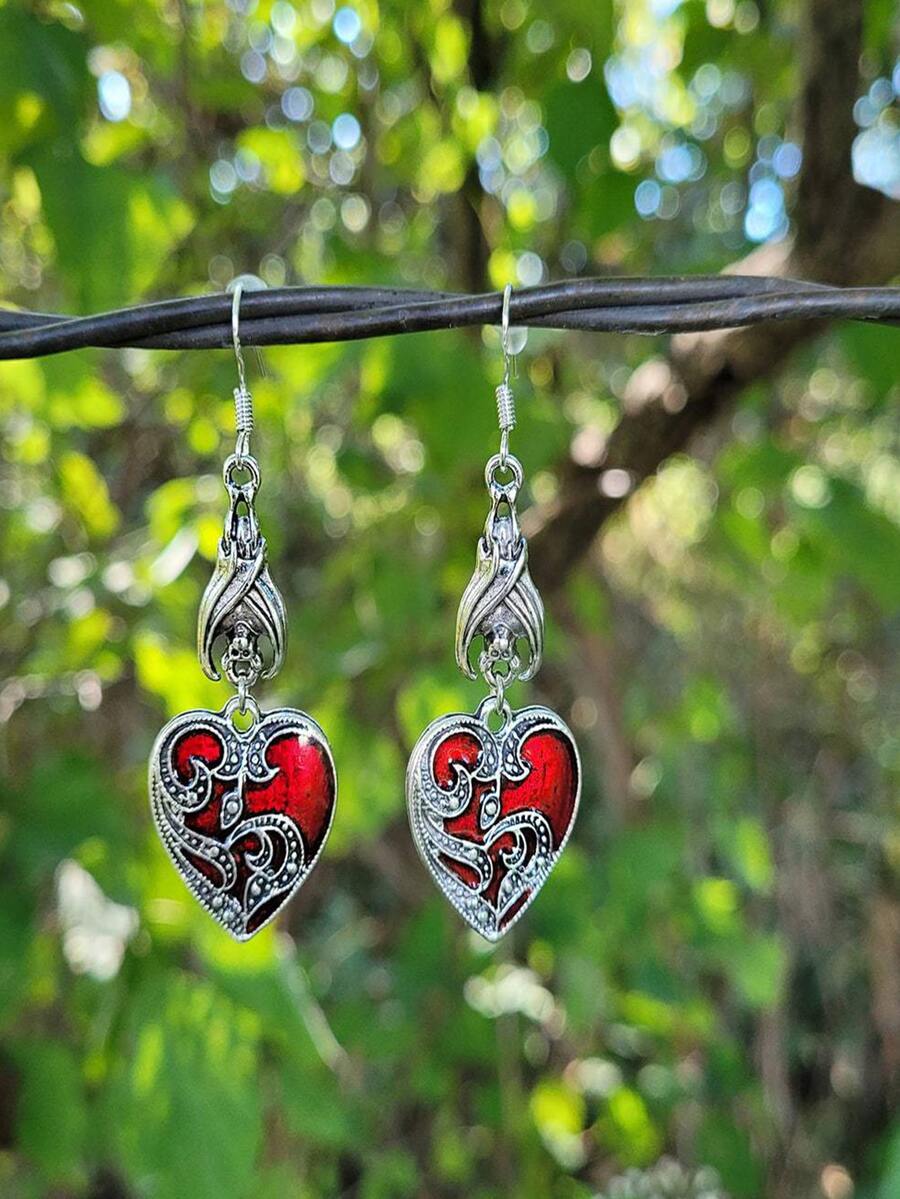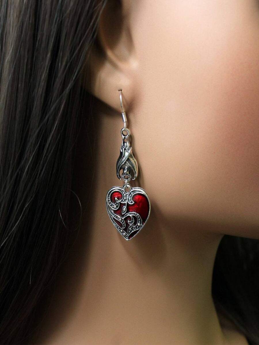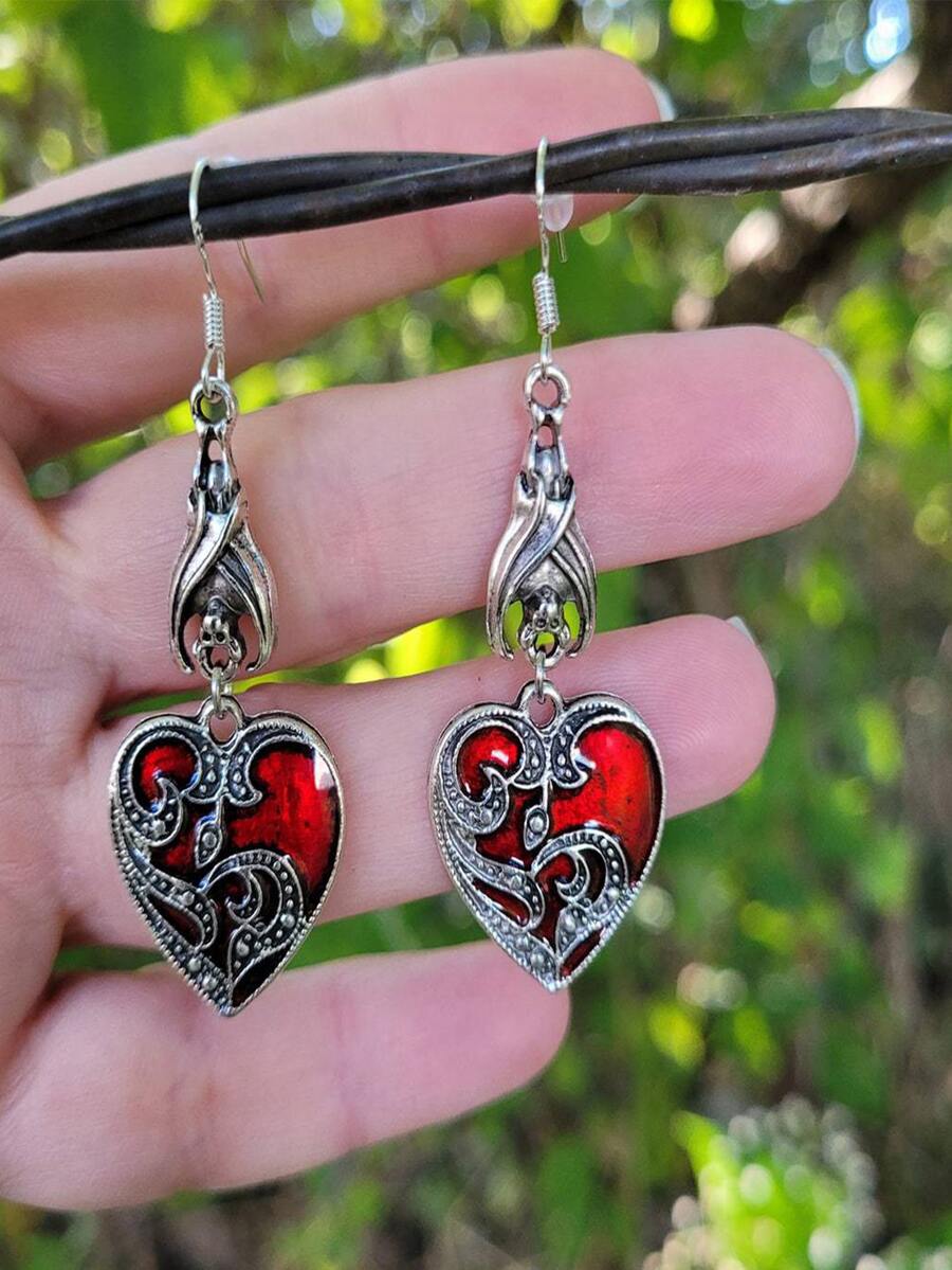 Pendants D'oreilles avec Cœur et Chauve Souris