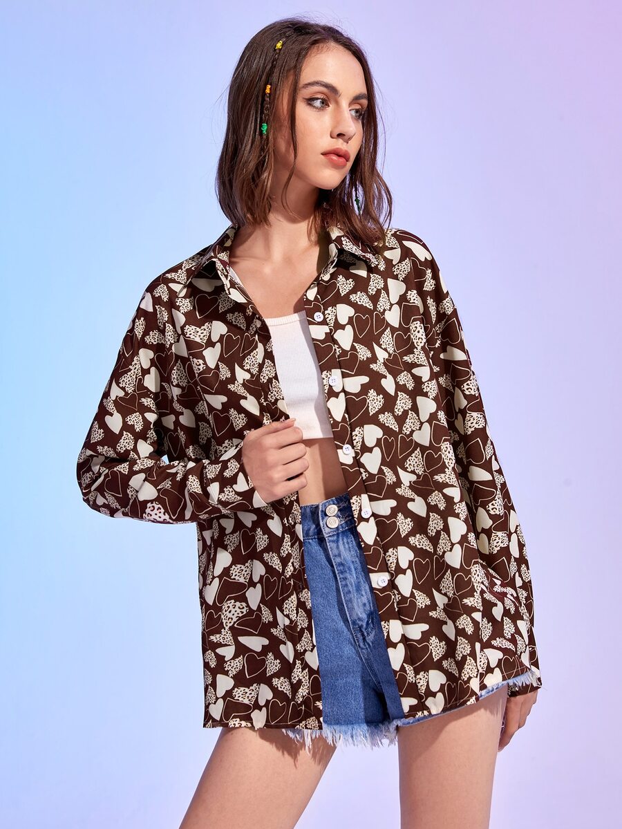 Chemisier à imprimé cœur à bouton