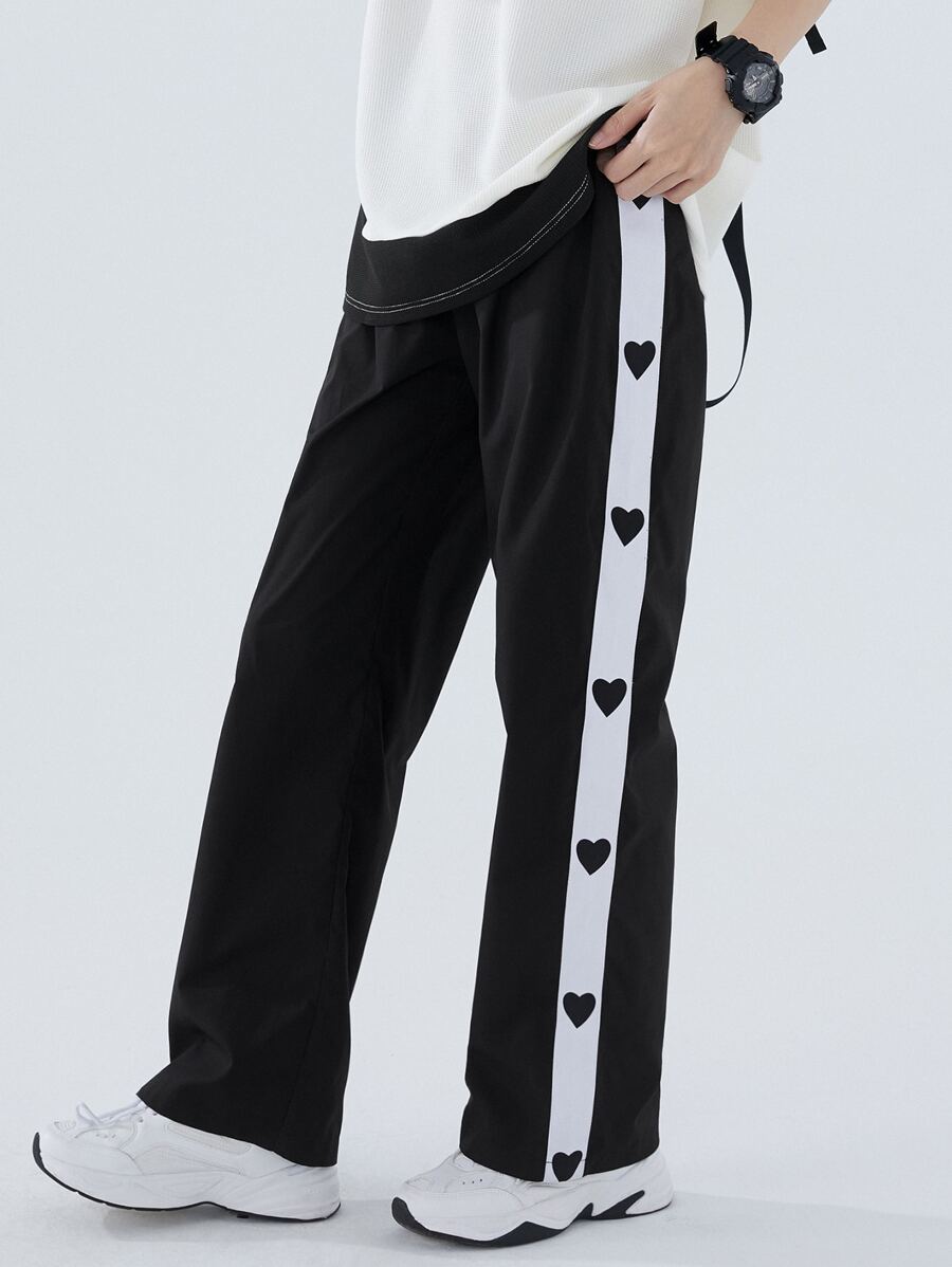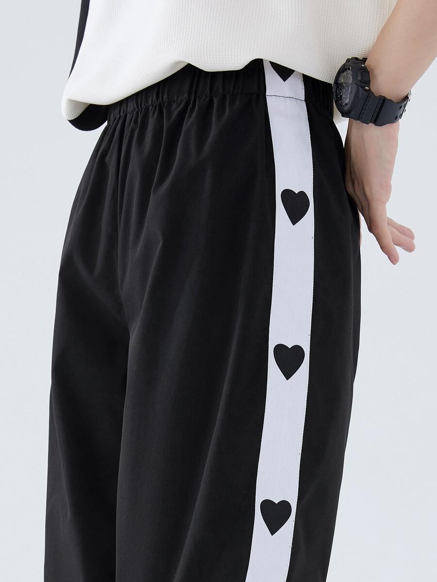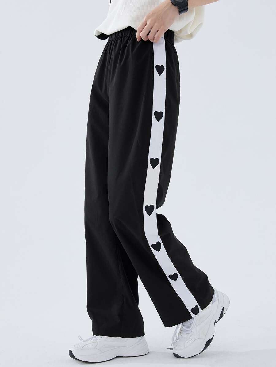 Pantalon de jogging pour femmes avec imprimé cœur et coutures latérales contrastées, vêtements de rentrée scolaire pour l'automne