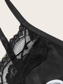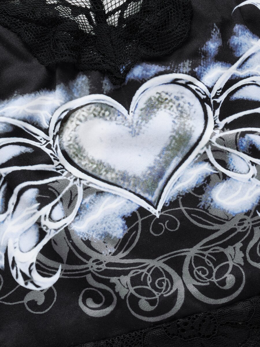 Top à fines brides à imprimé cœur ourlet en dentelle