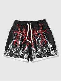 Short décontracté avec cordon de serrage à la taille et motif graphique, pour hommes, école