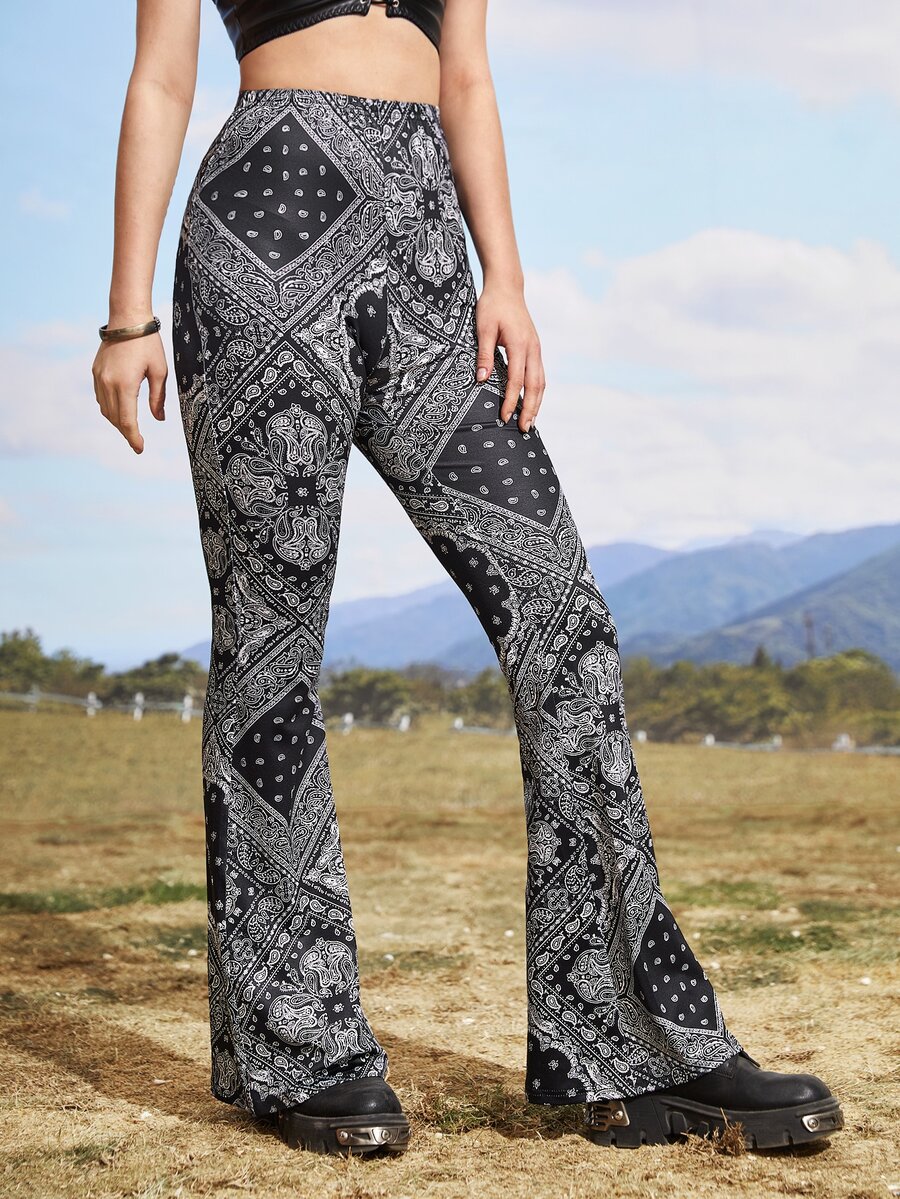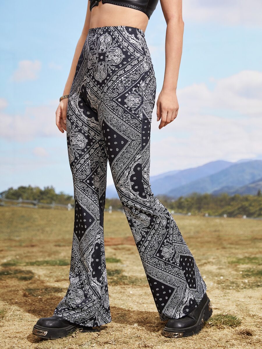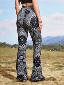 Pantalon évasé taille haute à imprimé
