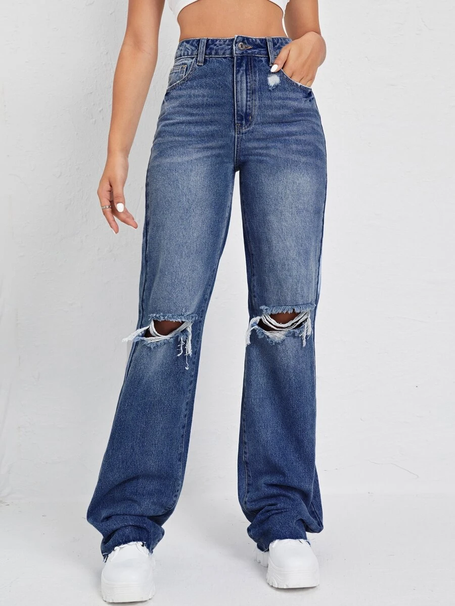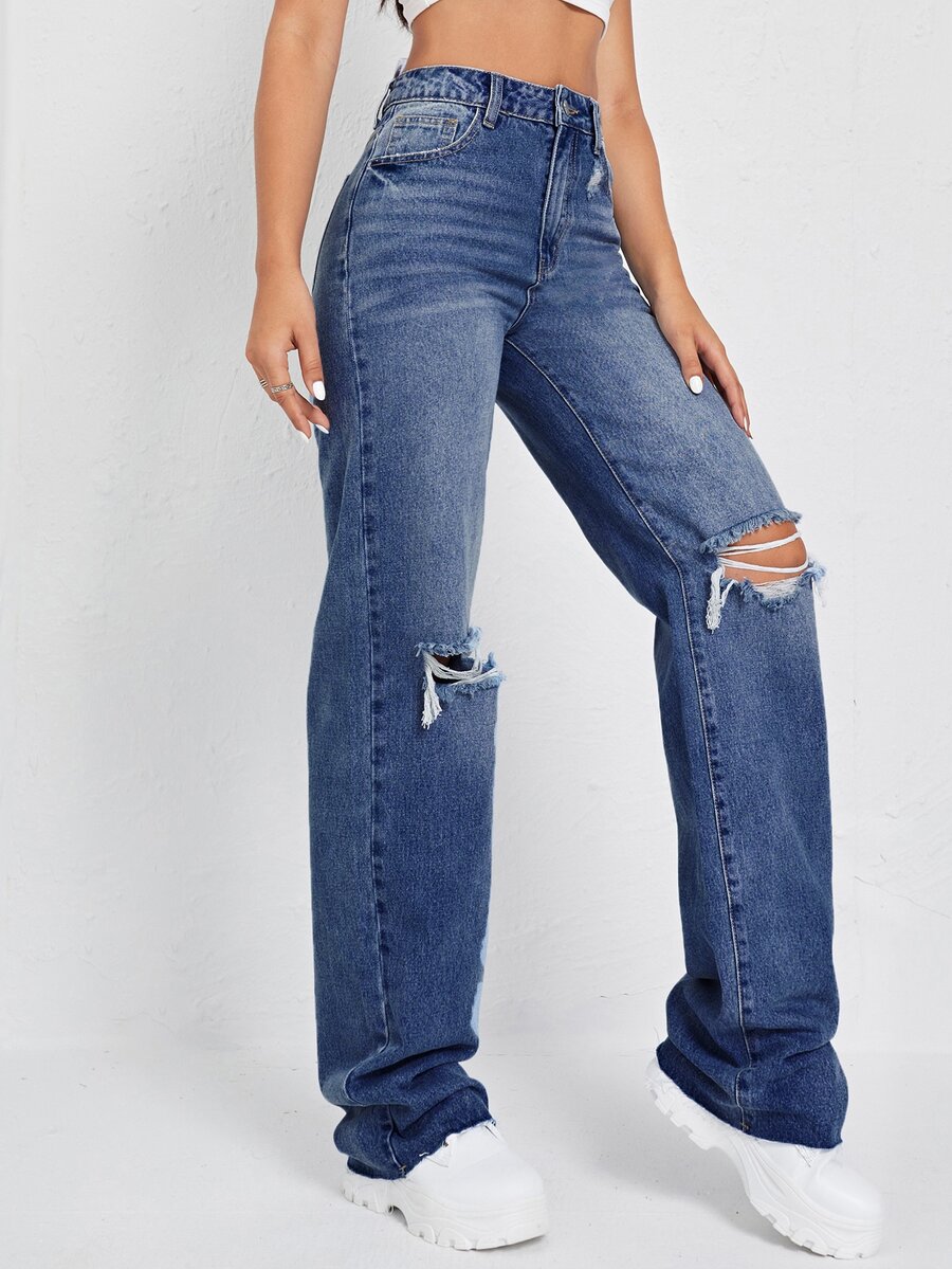 Jean déchiré taille haute