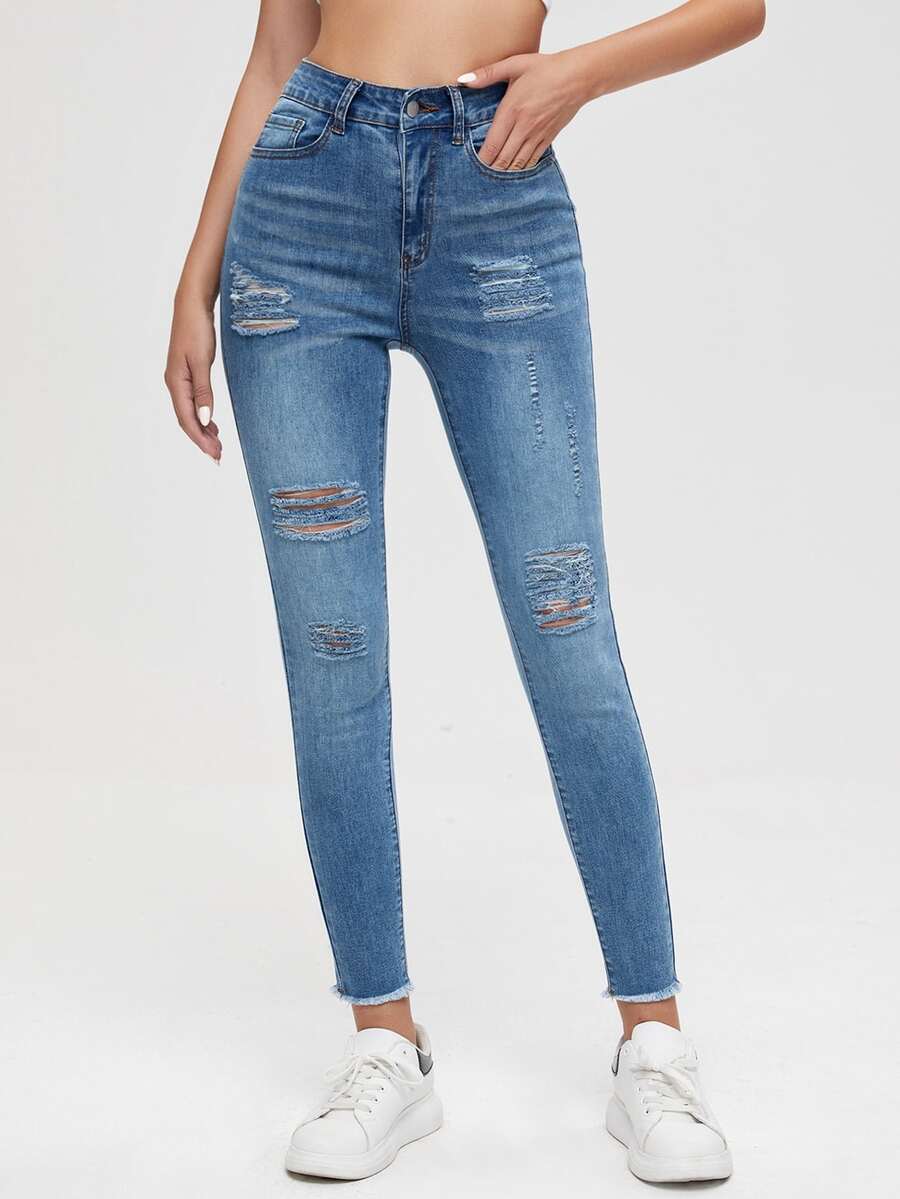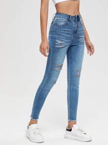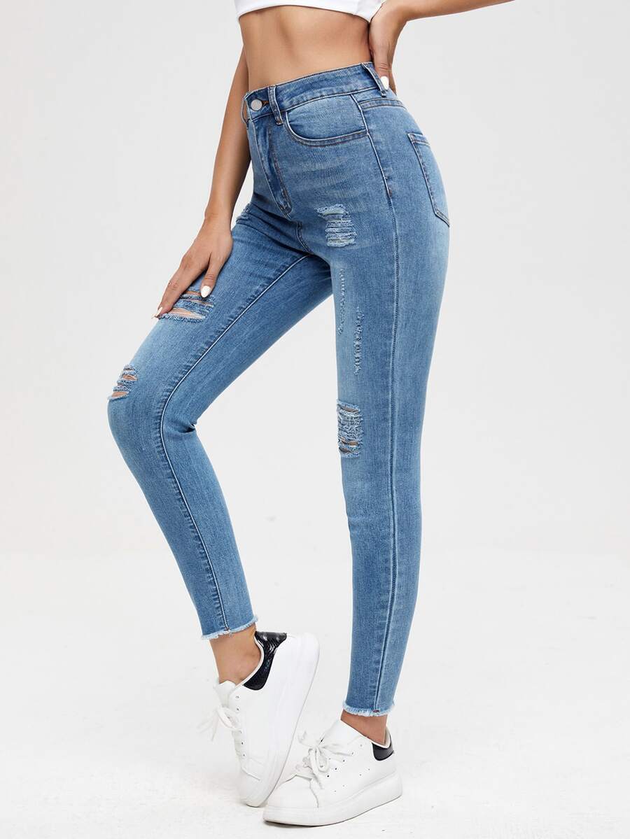 Jean taille haute déchiré à ourlet effiloché