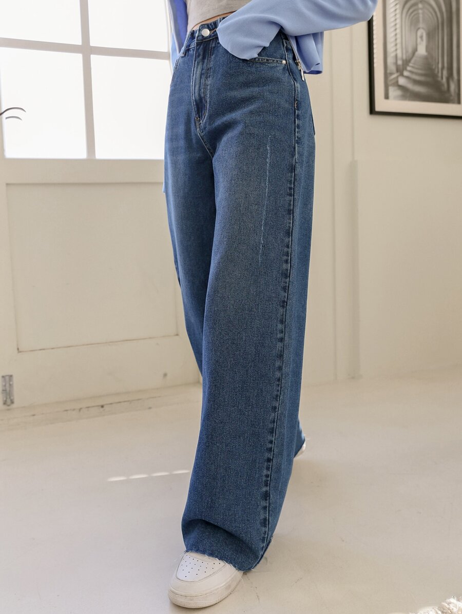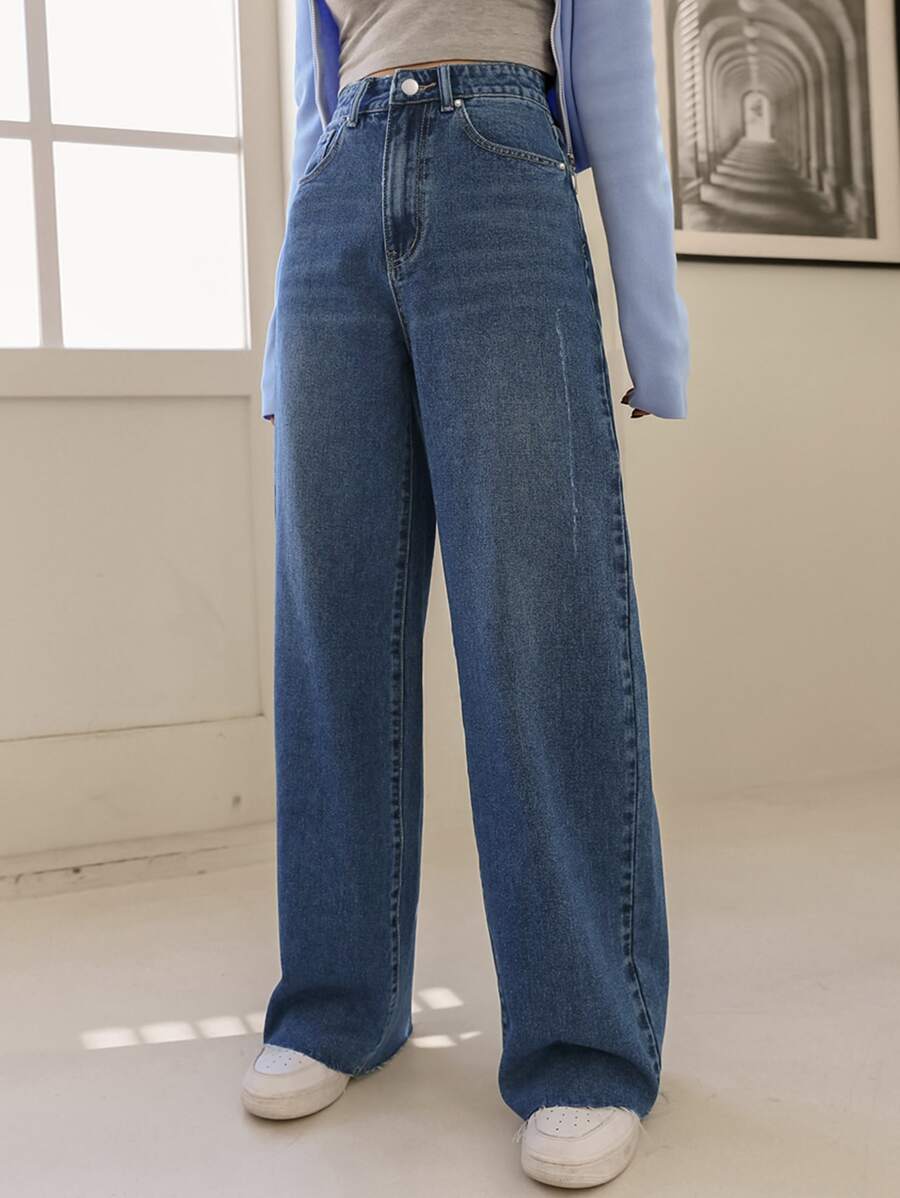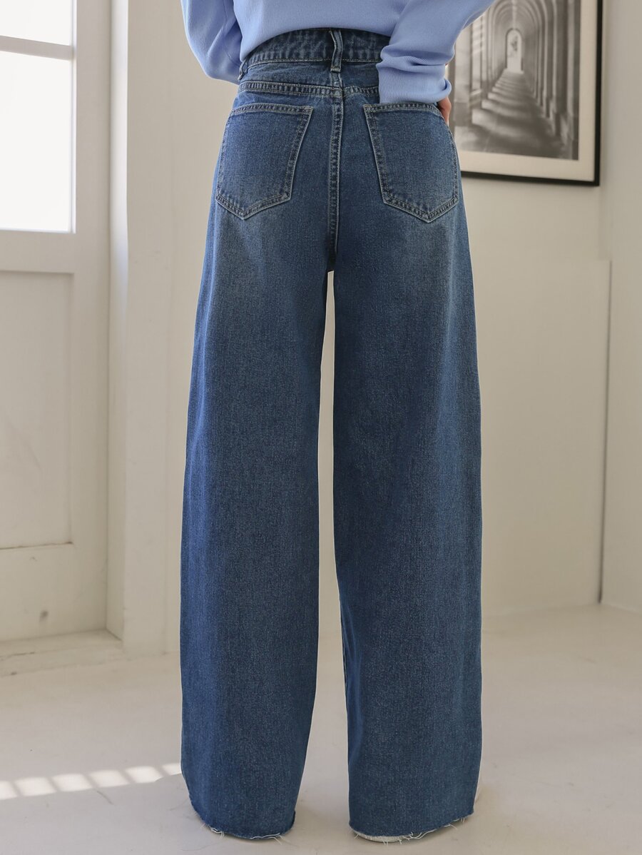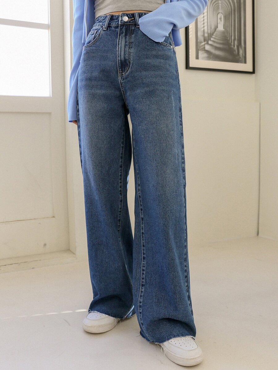 Jeans taille haute avec poches en biais et coupe brute, vêtements de rentrée scolaire