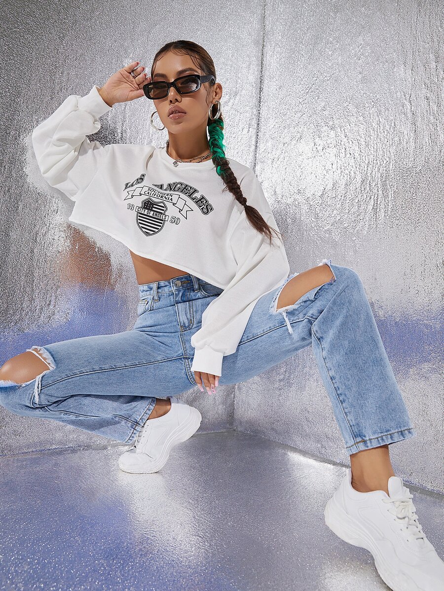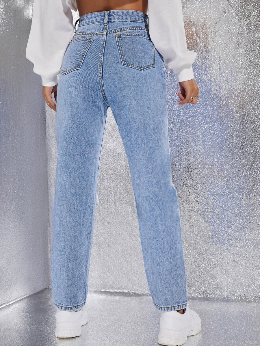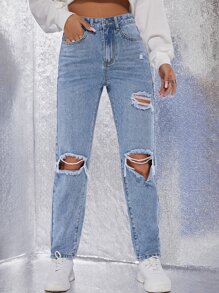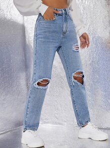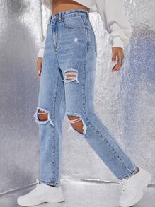 Jean déchiré taille haute droit