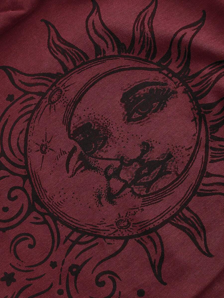 Hippie Haut sans bretelles pour femmes avec impression bohème de soleil et de lune, froncé
