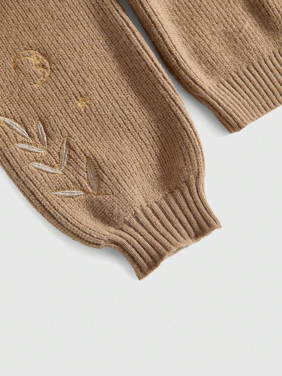Hippie pull rétro bohème aux vibrations de vacances avec broderie de lune et d'étoile bleu-vert