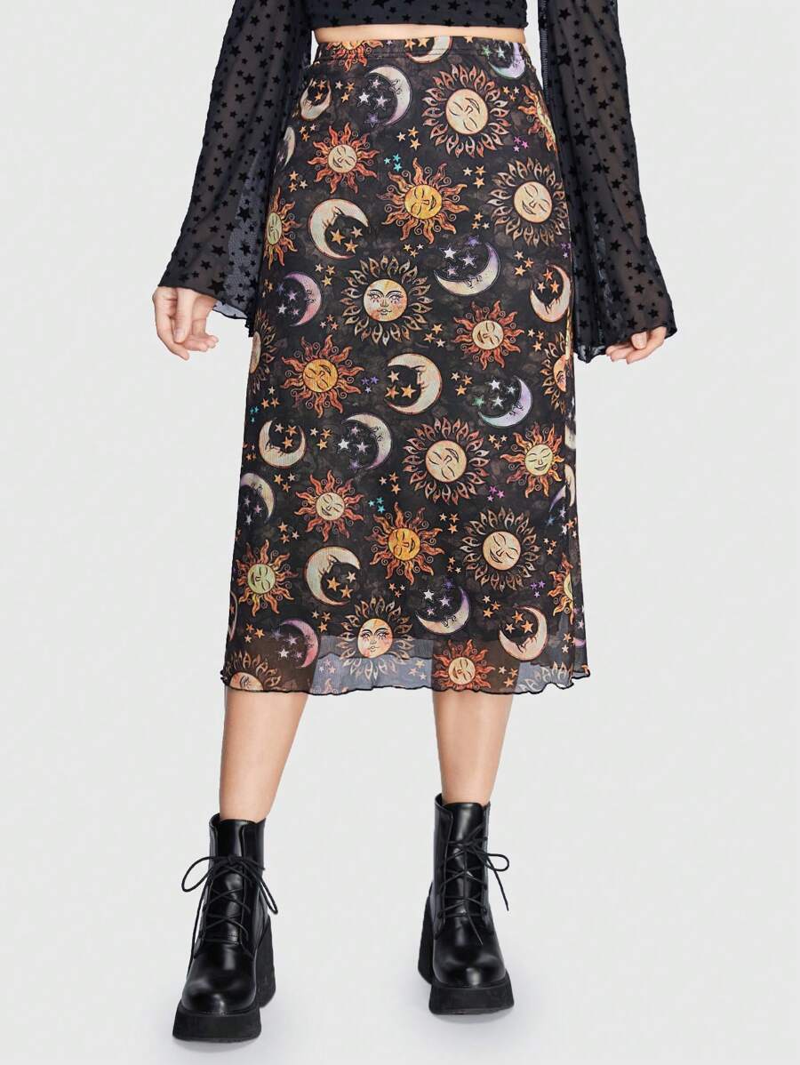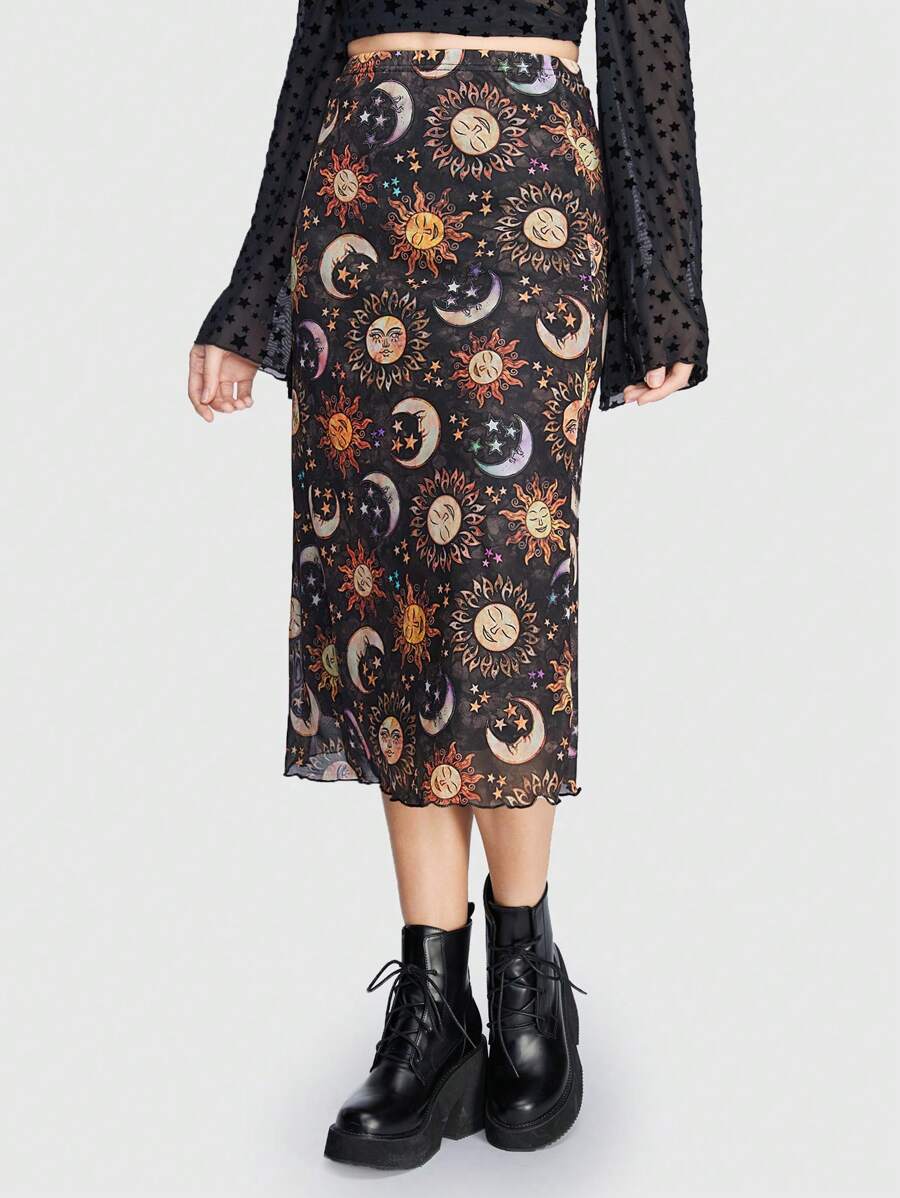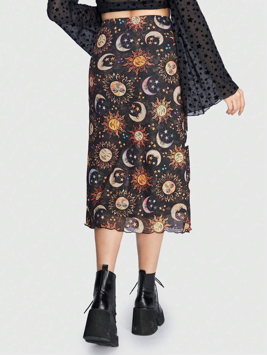 Hippie Jupe À Superposition En Maille Avec Motif Soleil, Lune Et Étoiles Pour La Reine