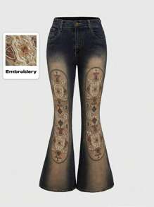 Pantalon évasé Vintage Hippie style Western brodé et délavé pour un ajustement mince