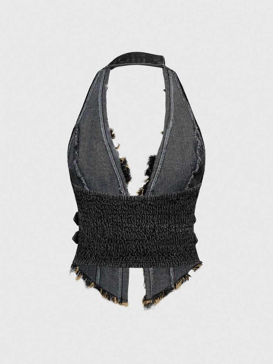 Hippie Débardeur en jean à franges mode femme