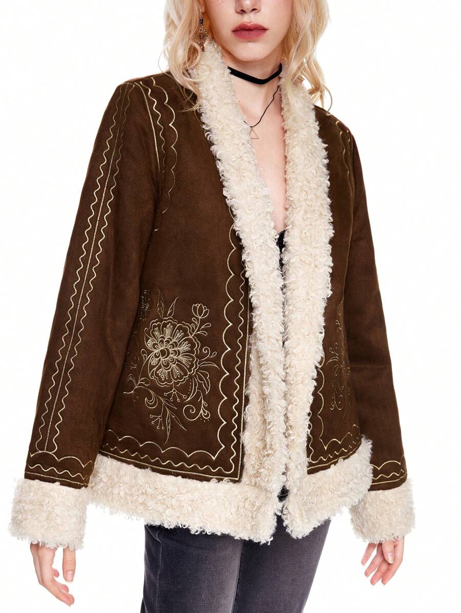 Hippie Veste en faux à patchwork avec broderie florale vintage pour femmes