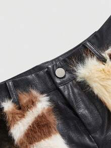 Short en cuir PU à taille basse, style hippie chic rétro Y2K, avec imprimé animal et patchwork de fausse fourrure, pour femmes, style Kpop