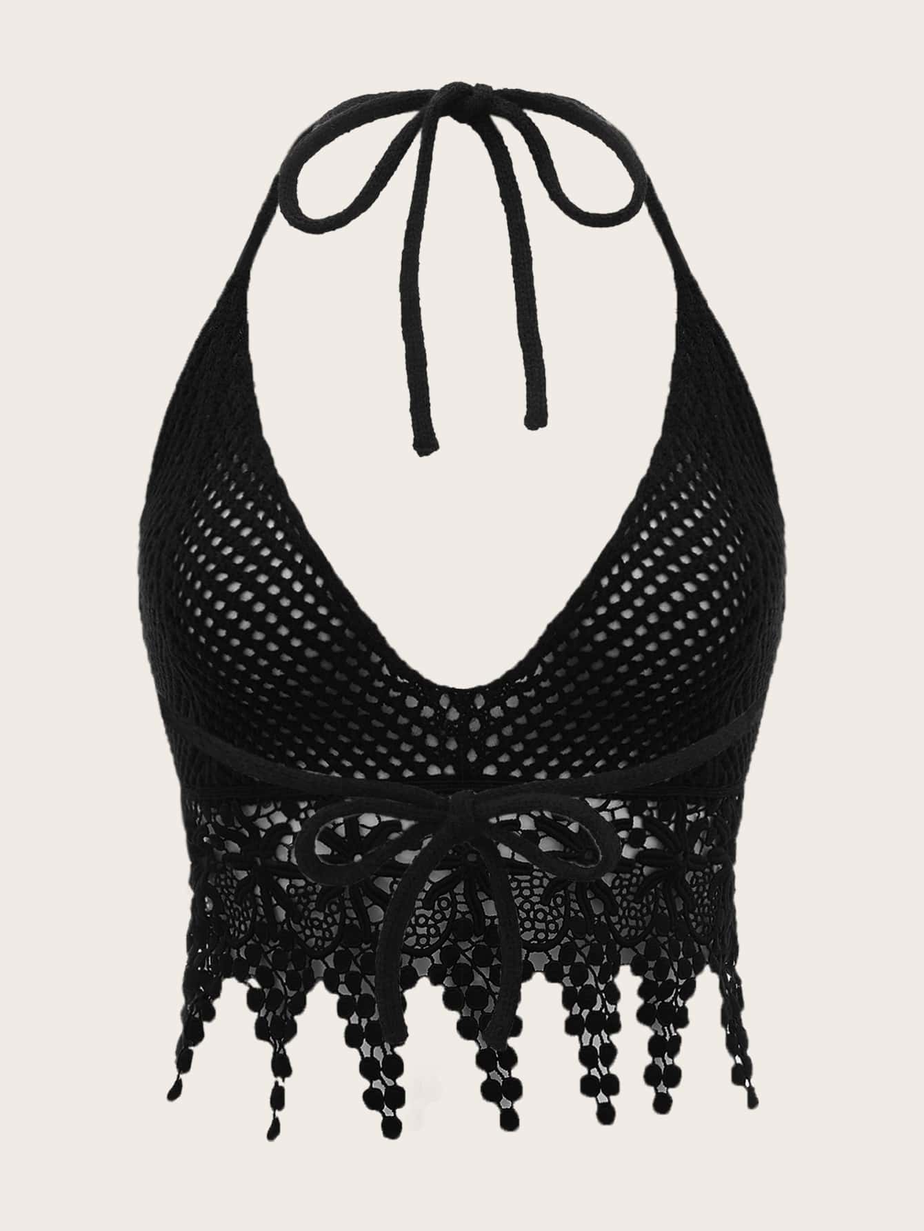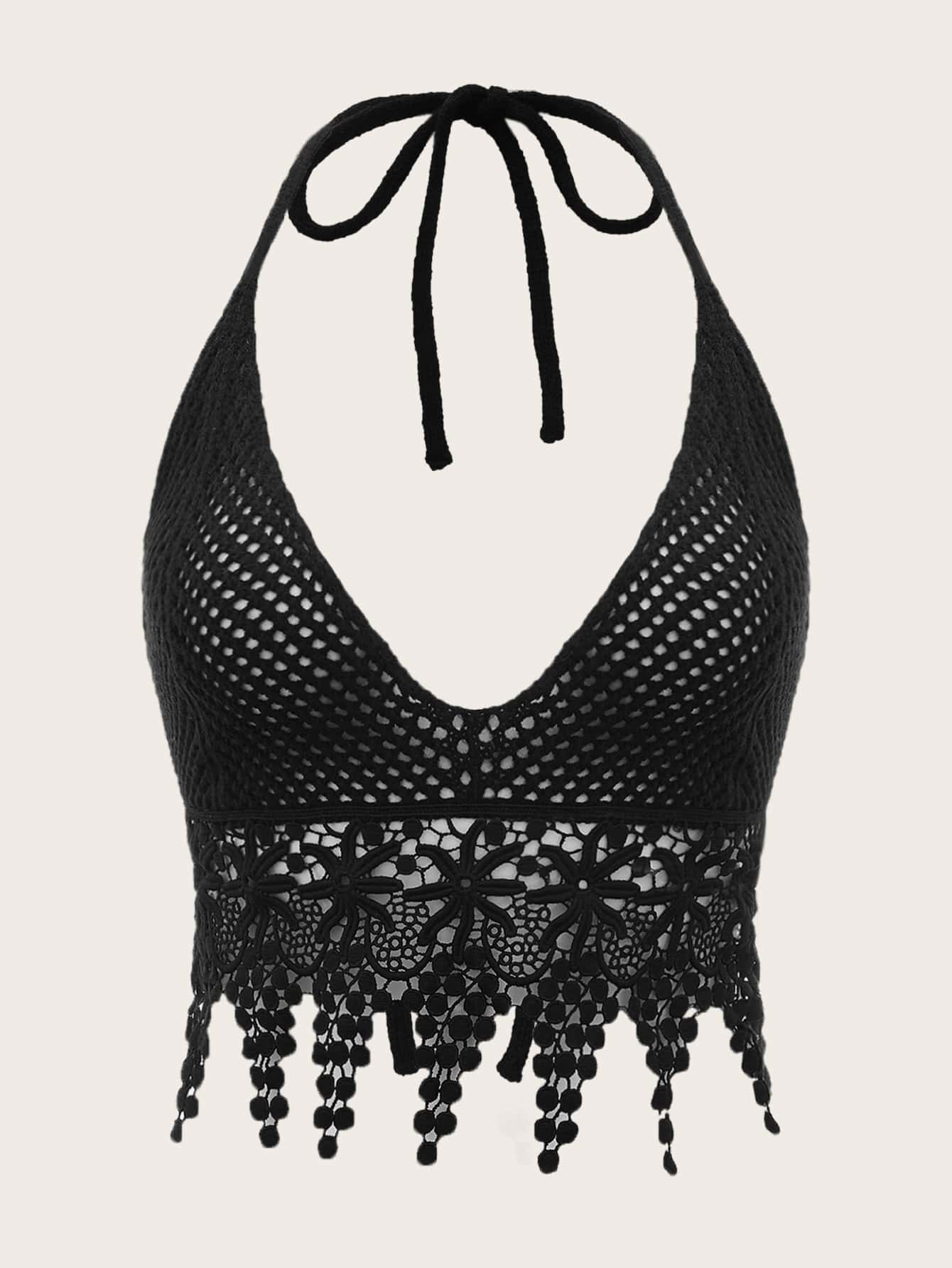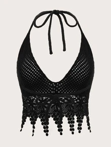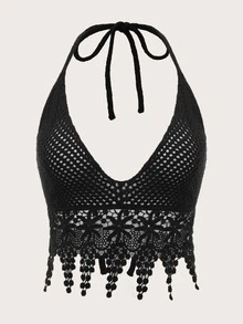 Top en tricot ajouré ras-du-cou