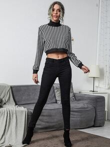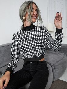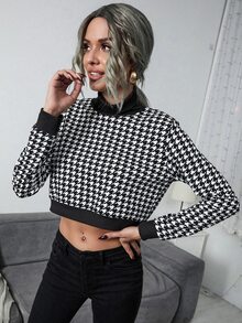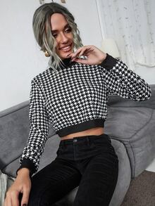 Sweat-shirt court à pied-de-poule