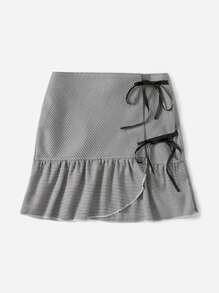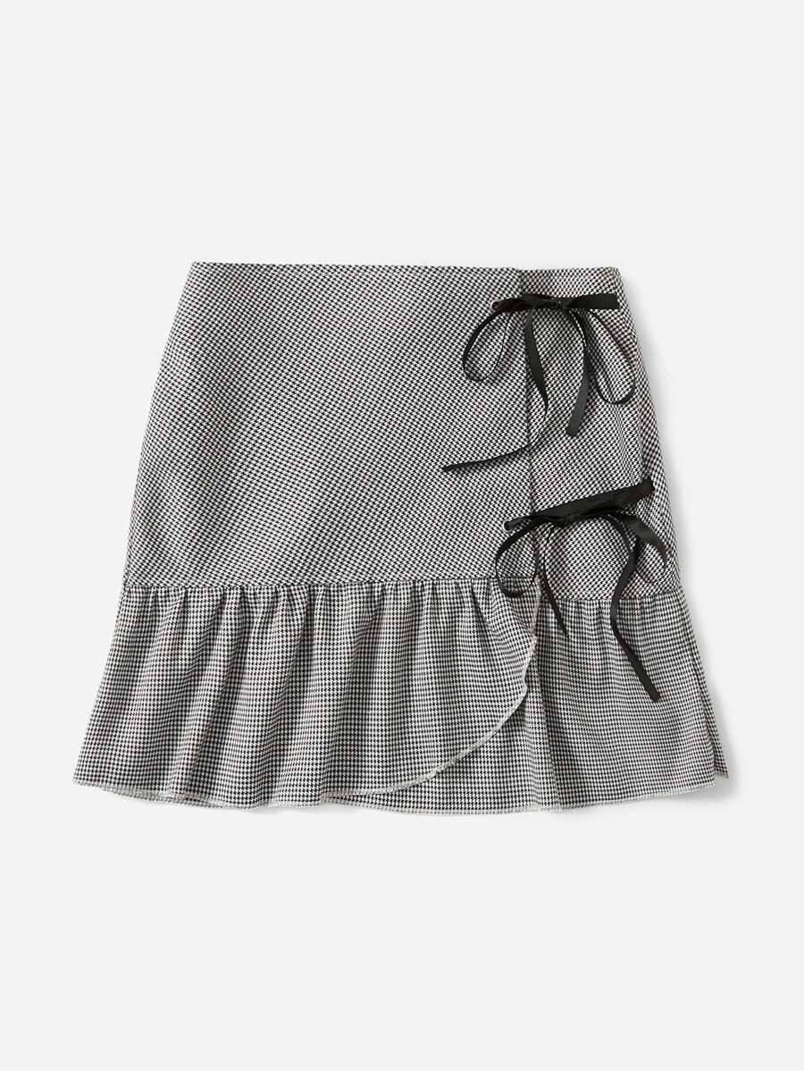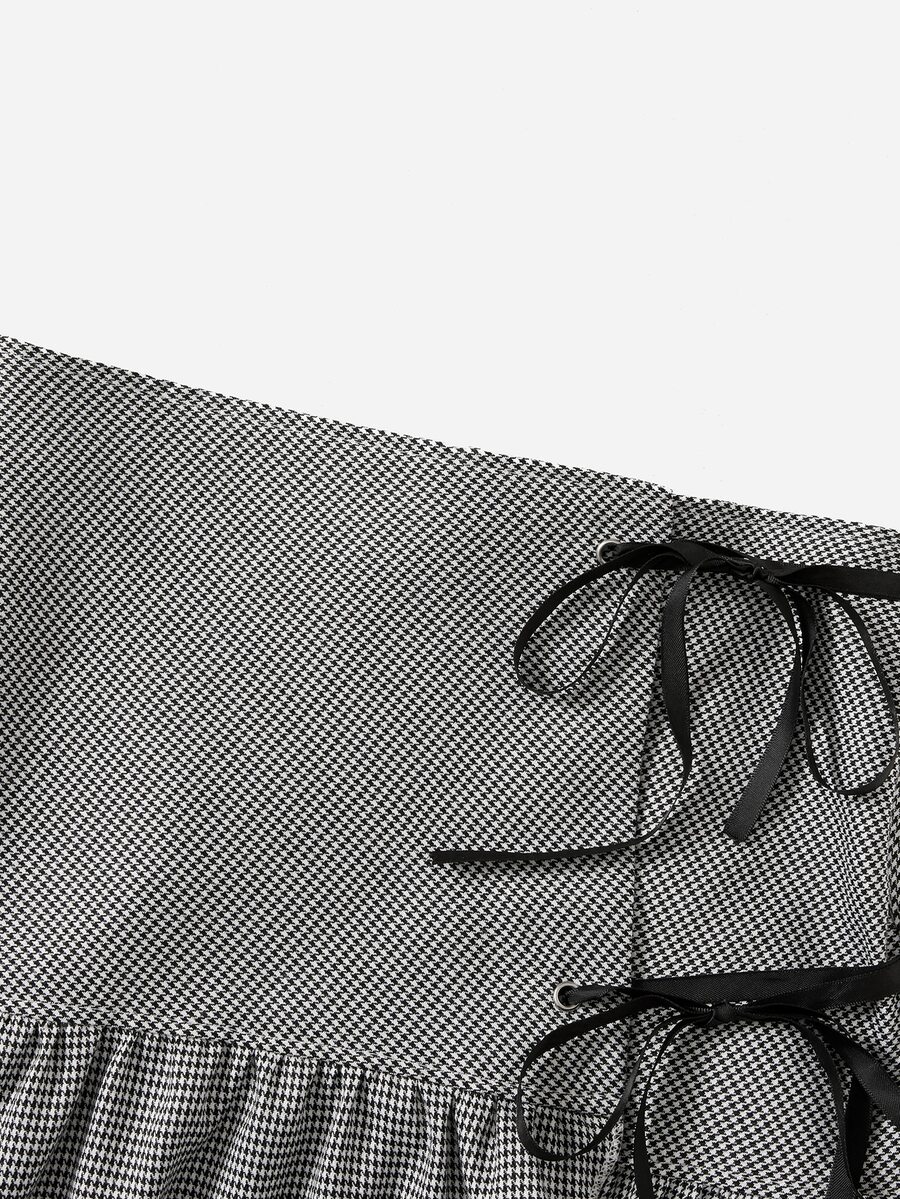 Jupe à pied-de-poule à nœud