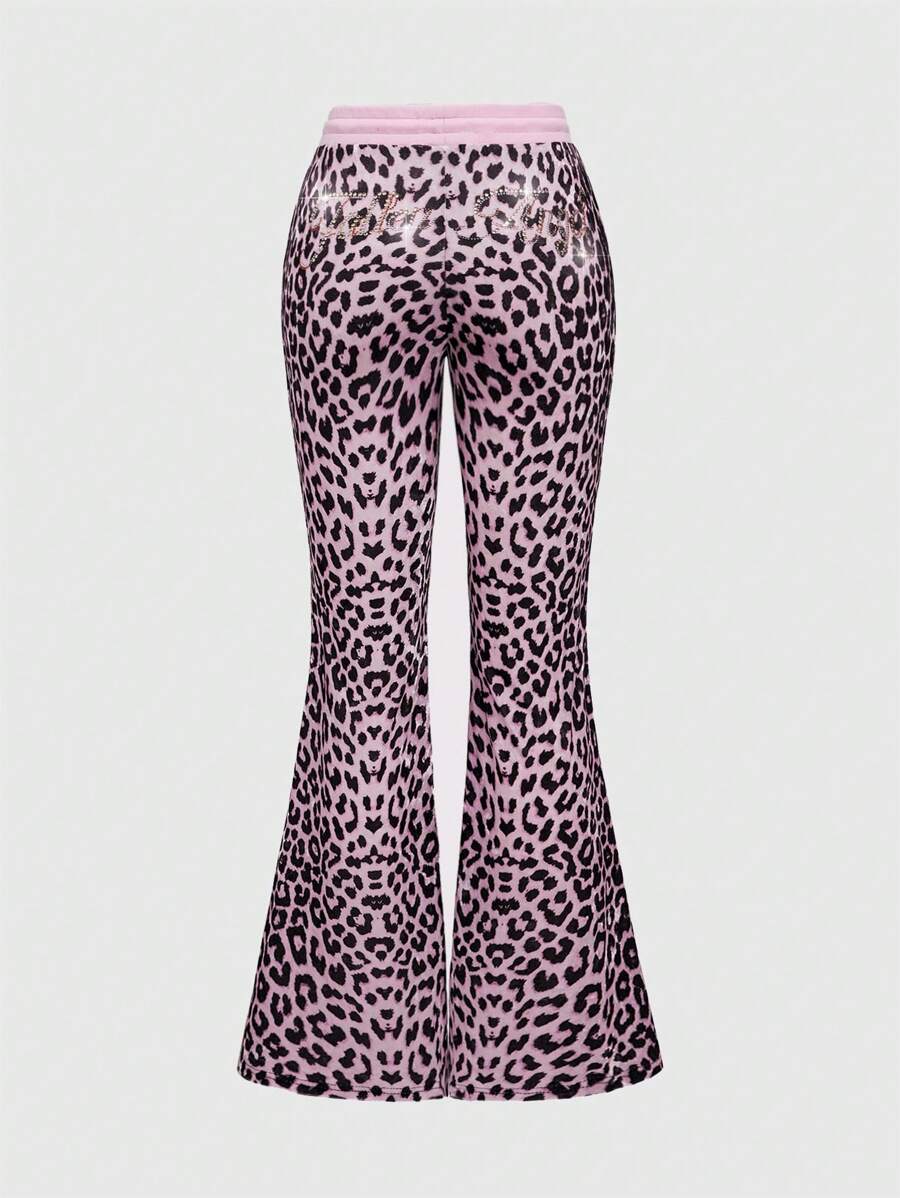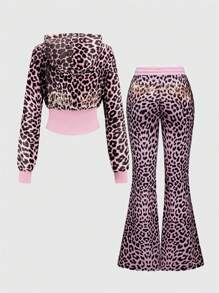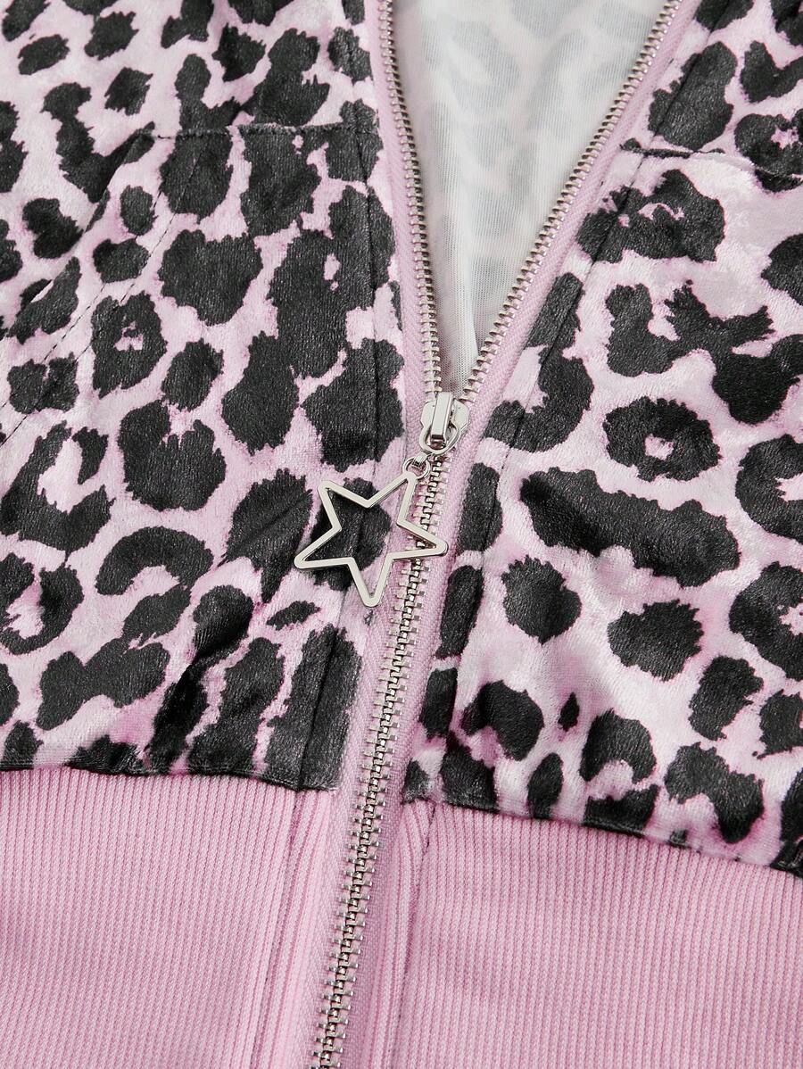 J-Fashion 2 pièces Ensemble de Sweat-shirt-shirts courts zippés en velours à imprimé léopard avec décoration de strass, style Y2K pour femmes