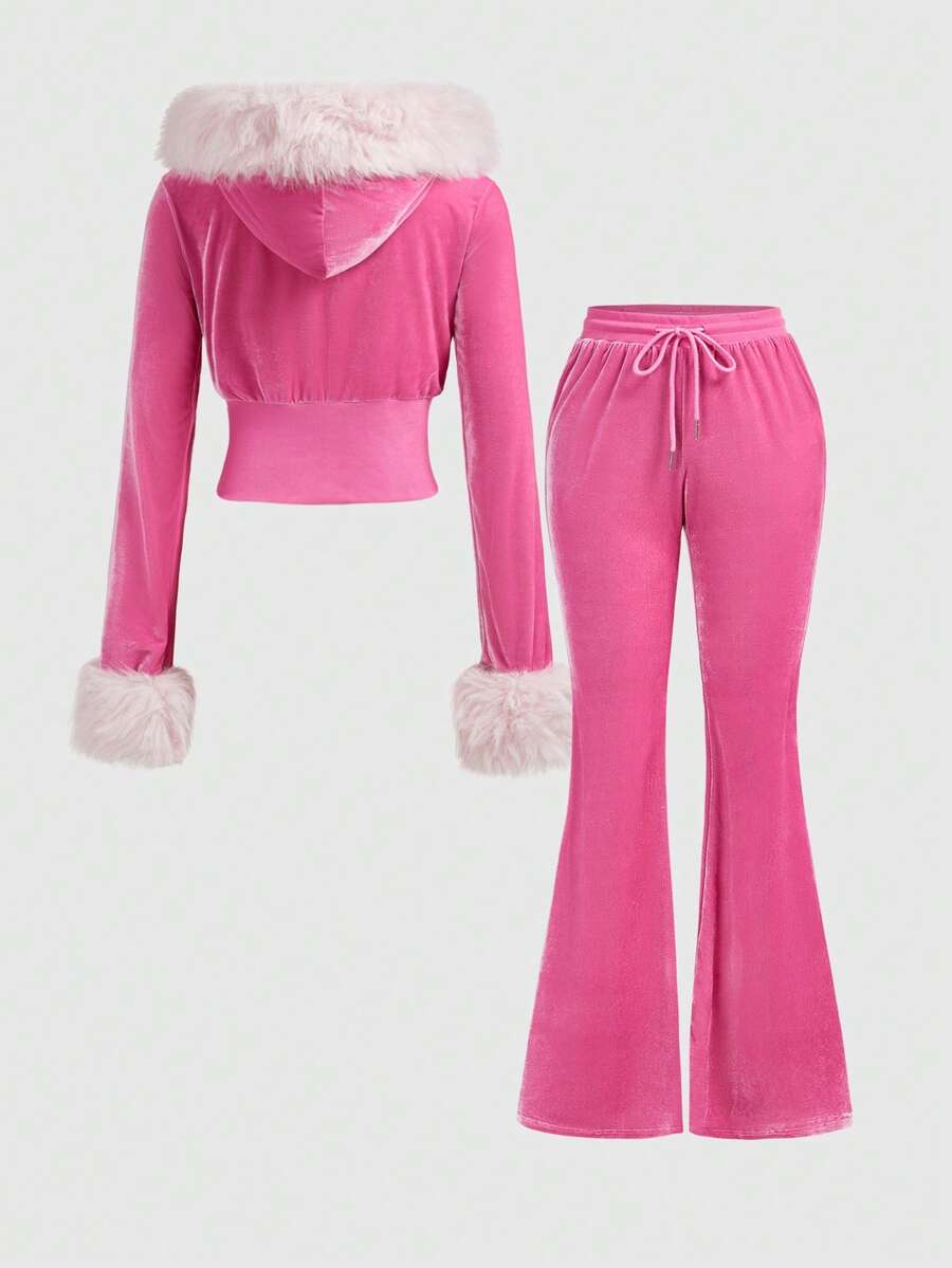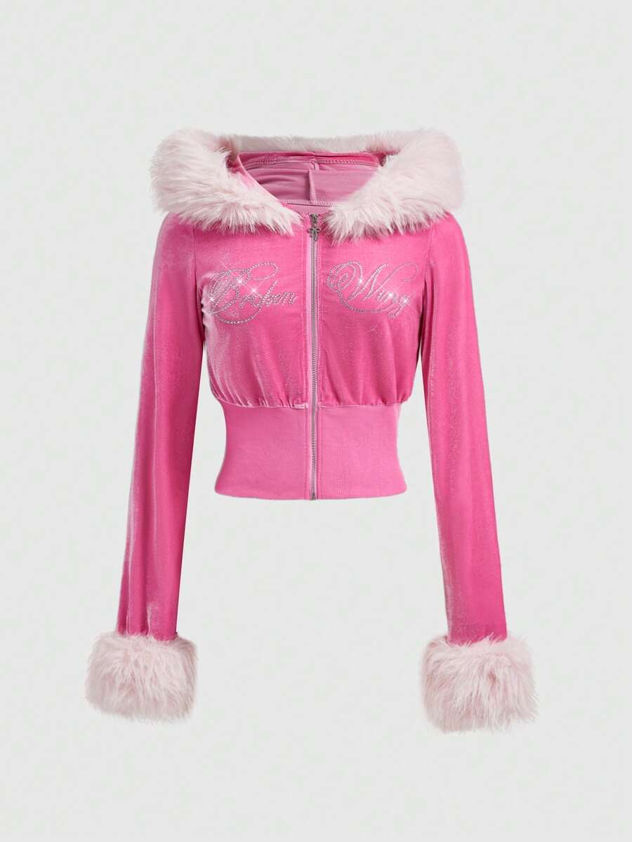 J-Fashion 2 pièces Ensemble de sweat-shirt en velours avec ornements de strass Y2K, automne/hiver