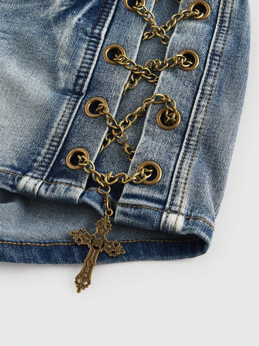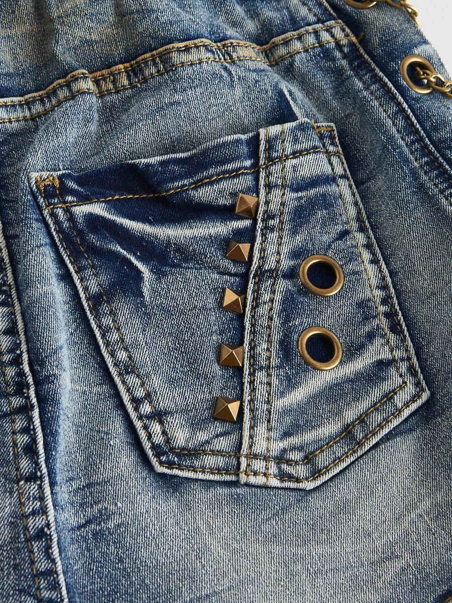 J-Fashion Combinaison en jean pour femme avec détails vintage délavés et métal aspect vieilli
