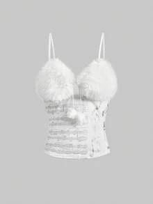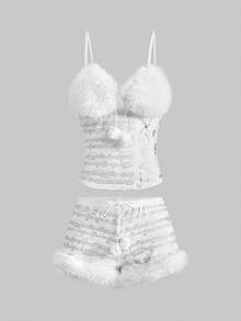 J-Fashion Tenue d'hiver Gyaru Y2K Abby Himekaji, Gilet bouffant amovible assorti à des shorts bouffants taille basse, Ensemble 2 pièces pour femmes