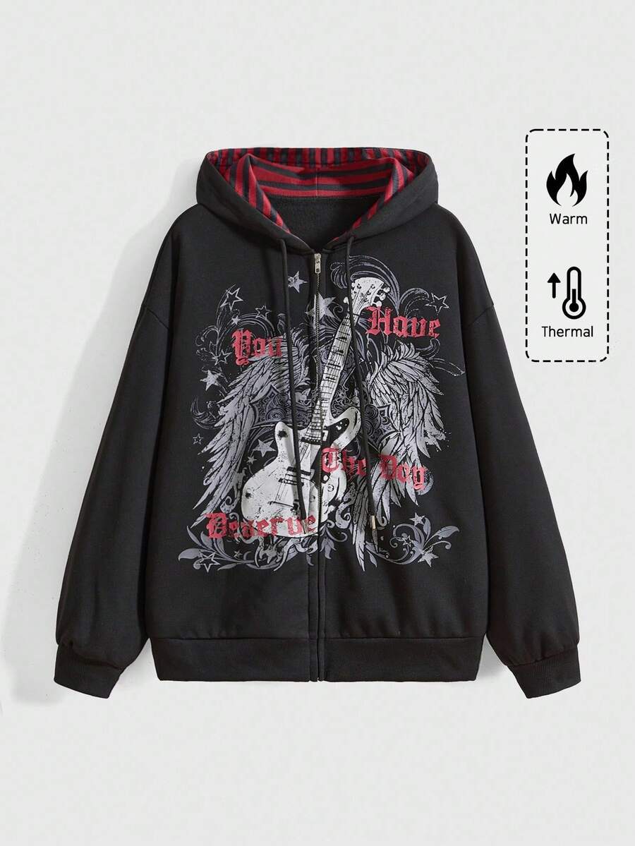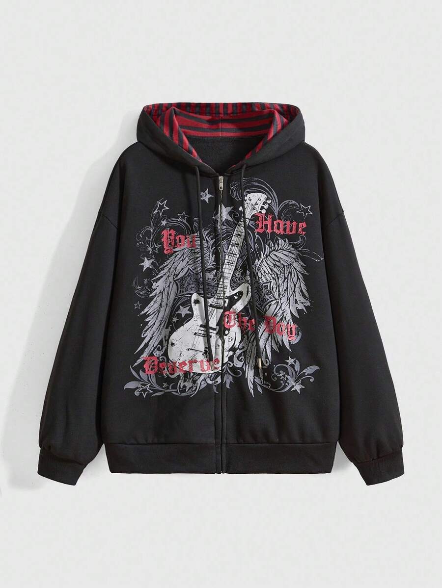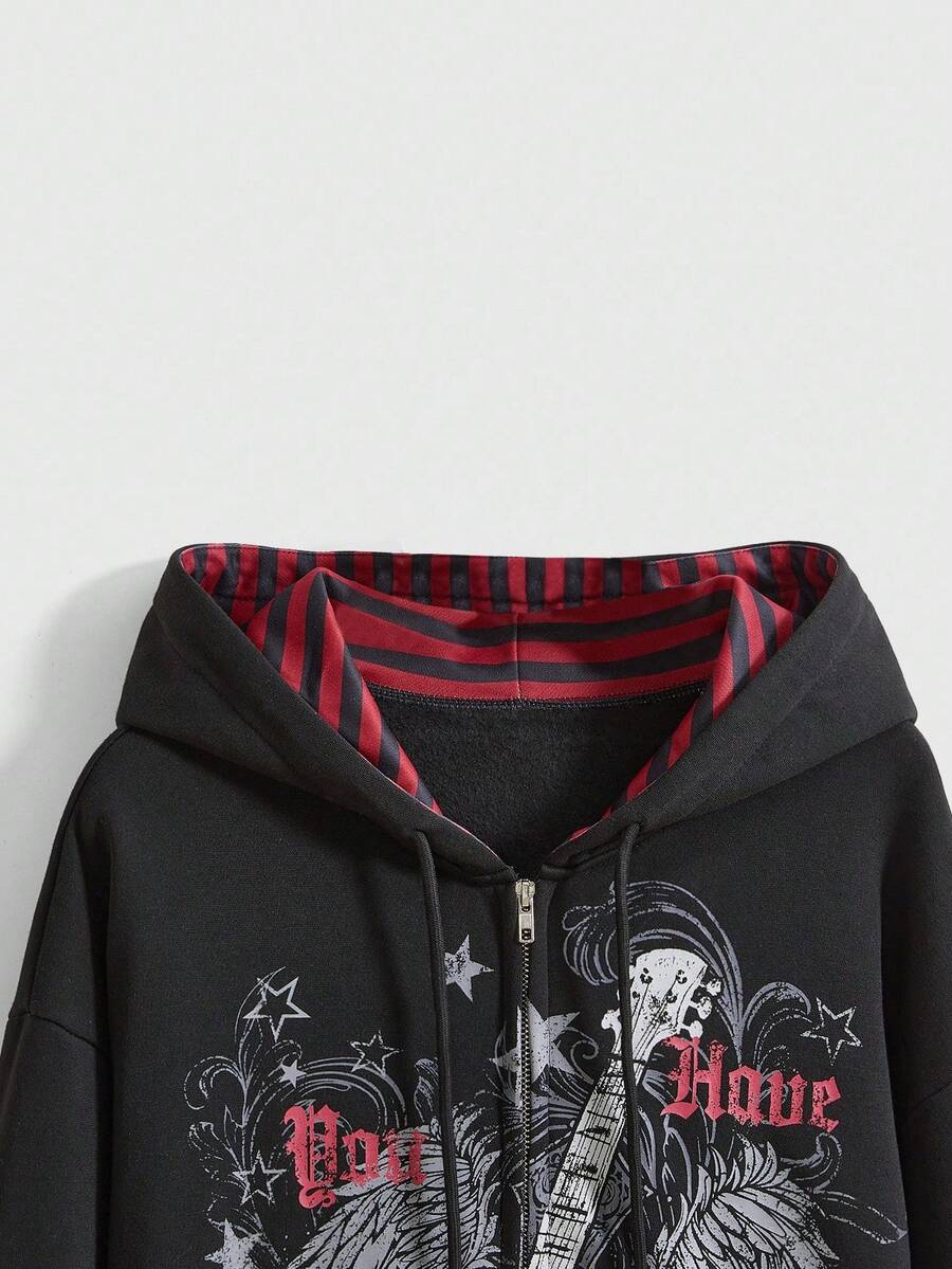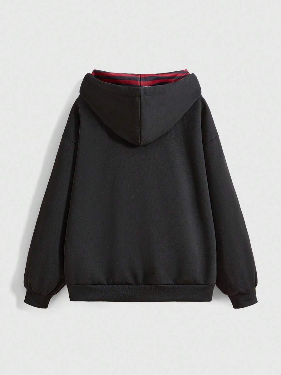 J-Fashion sweat-shirt à capuche unisexe bicolore rayé 2 en 1 style punk ailes d'Halloween Y2K