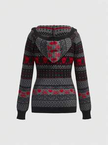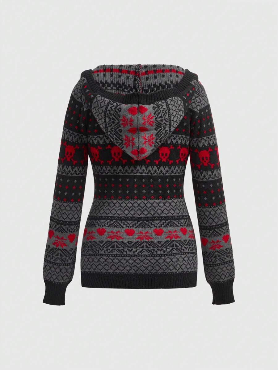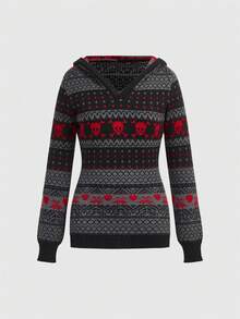 J-Fashion sweat-shirt à capuche en jacquard imprimé crâne d'Halloween pour femmes, automne/hiver