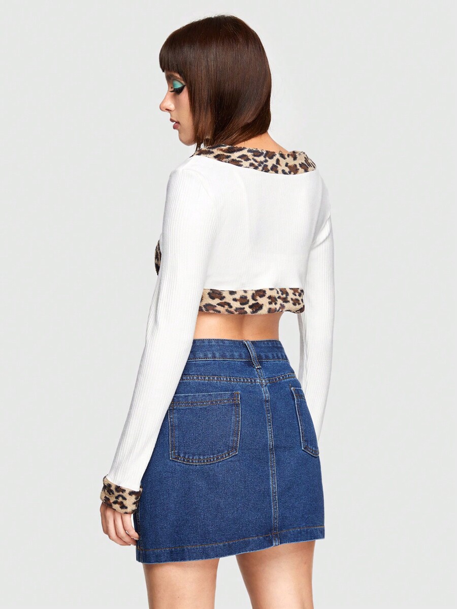 J-Fashion Veste de style Shibuya sexy pour femme avec motif à fourrure de léopard et côtelé