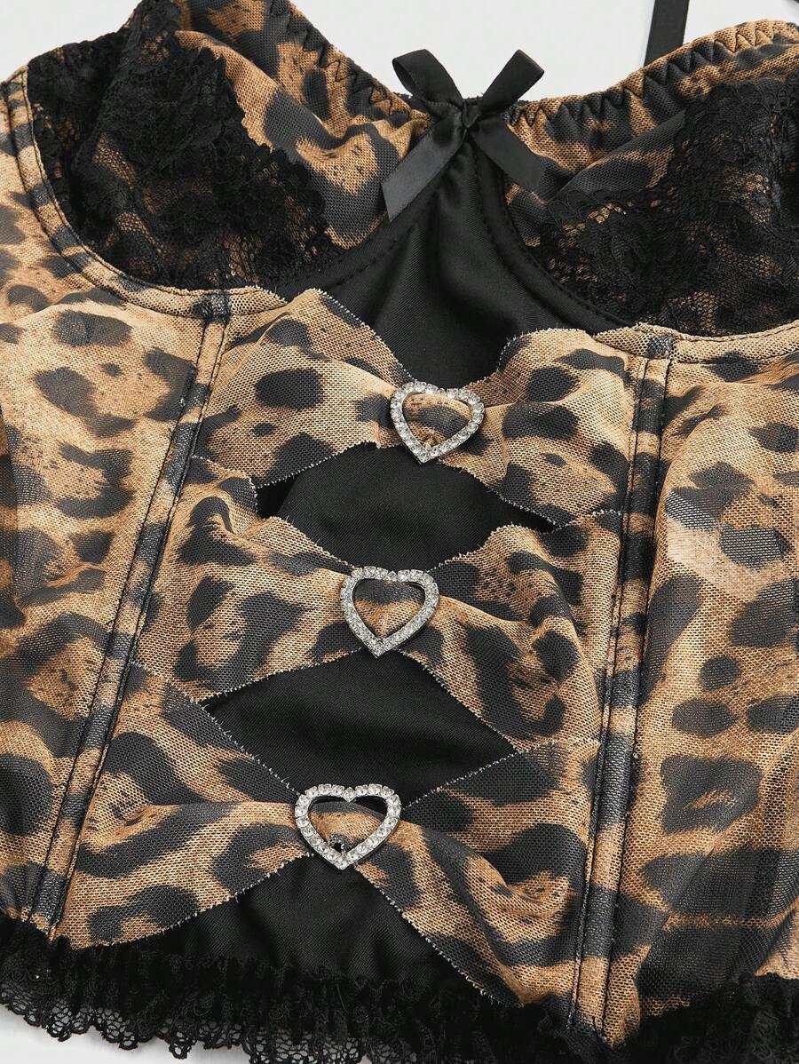 J-Fashion Débardeur avec nœud imprimé léopard et décoration en forme de cœur