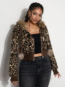 J-Fashion Sweat-shirt-shirt léopard grande taille avec taille resserrée pour femmes