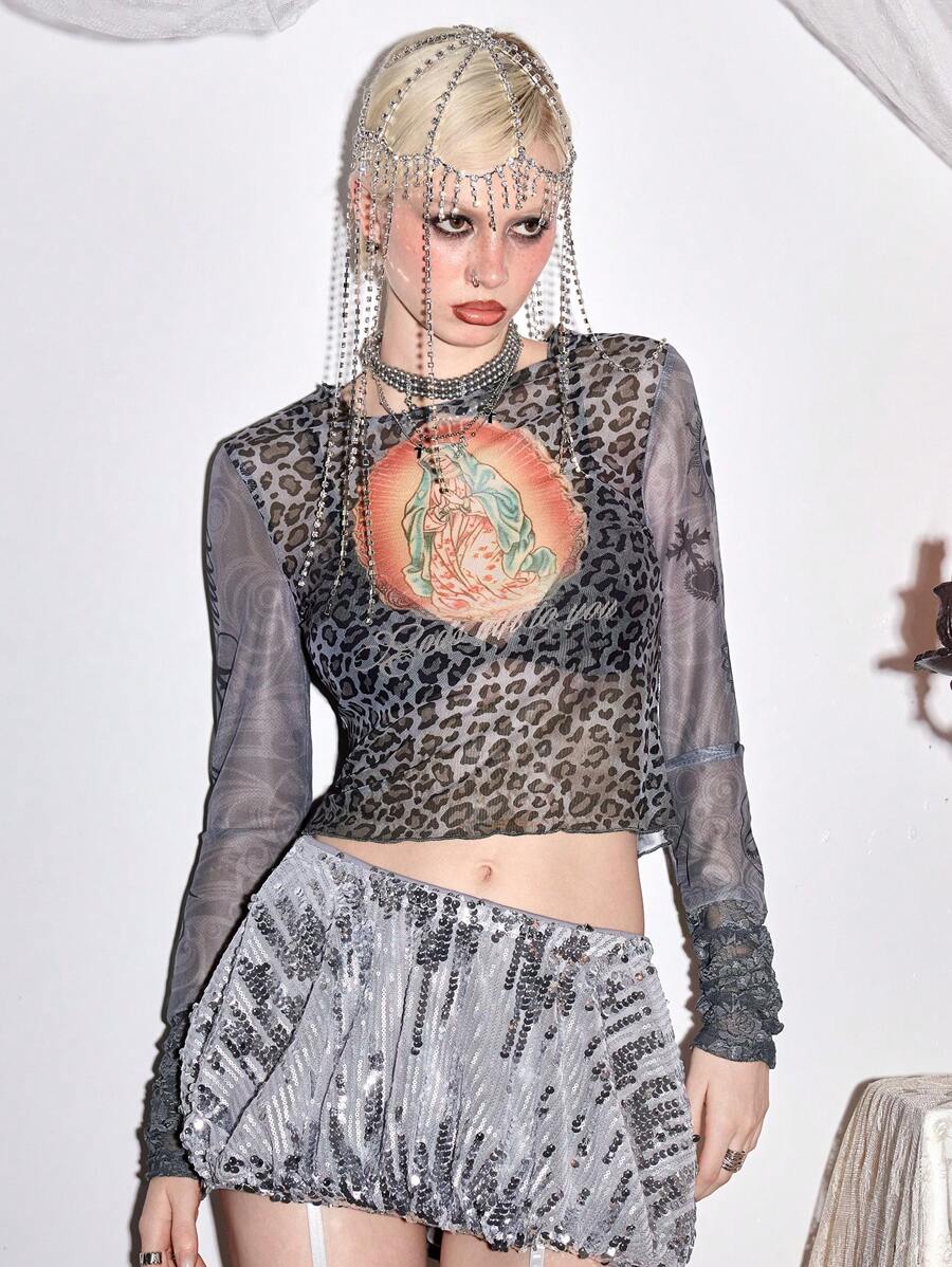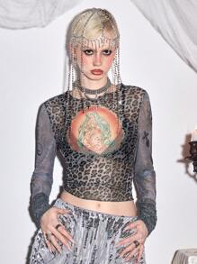 J-Fashion Top court sexy moulant et transparent à imprimé léopard Subculture Y2K pour femmes