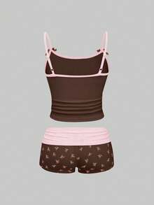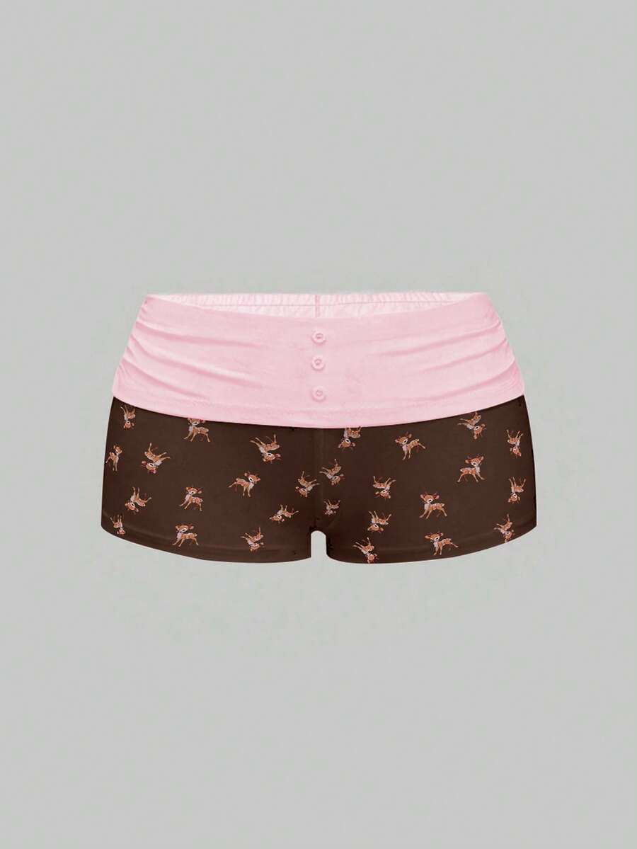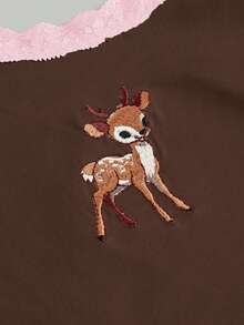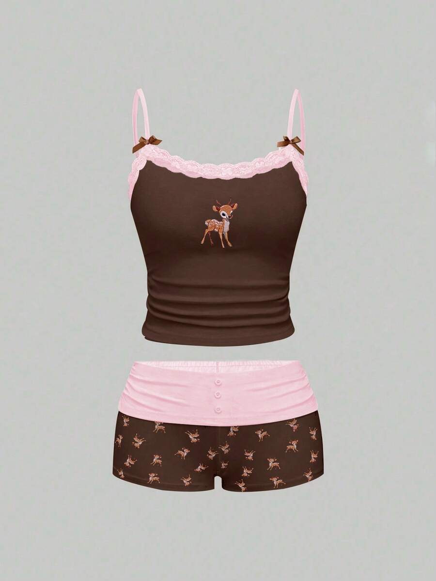 J-Fashion Ensemble Top camisole en dentelle avec broderie de cerf mignon et short imprimé cerf pour femmes