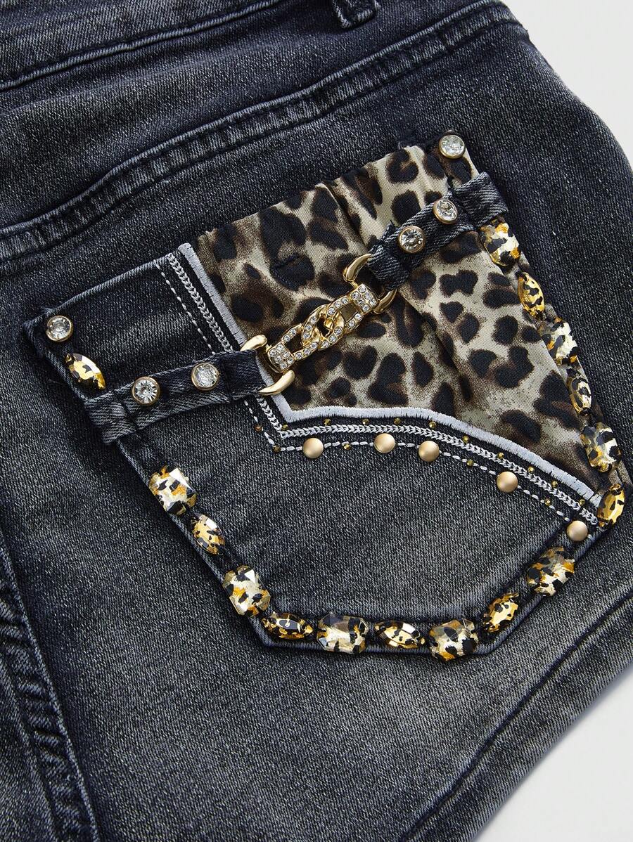 Short en jean décontracté et polyvalent avec poche et imprimé léopard pour femmes