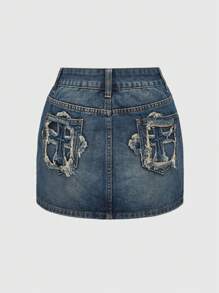 J-Fashion Jupe en denim casual pour femmes avec des bords effrangés, été, moulante