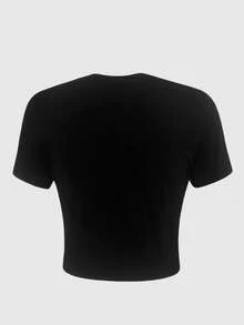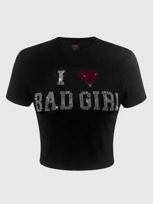J-Fashion T-shirt court à col rond, manches courtes, avec slogan et strass pour femmes, style Kpop