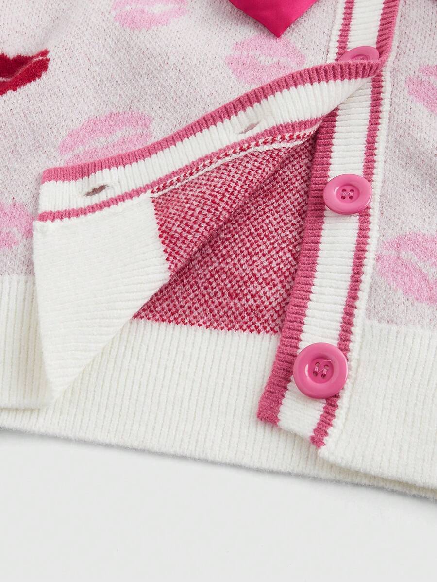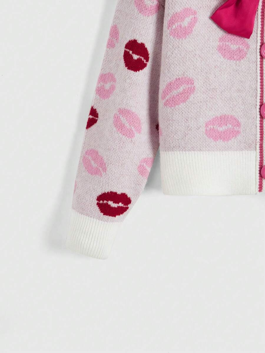 J-Fashion Cardigan à nœud papillon Y2K pour femmes avec lèvres rouges