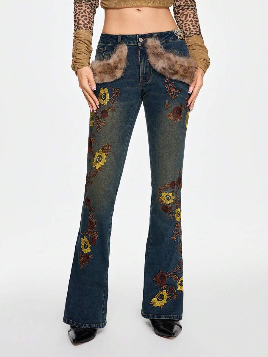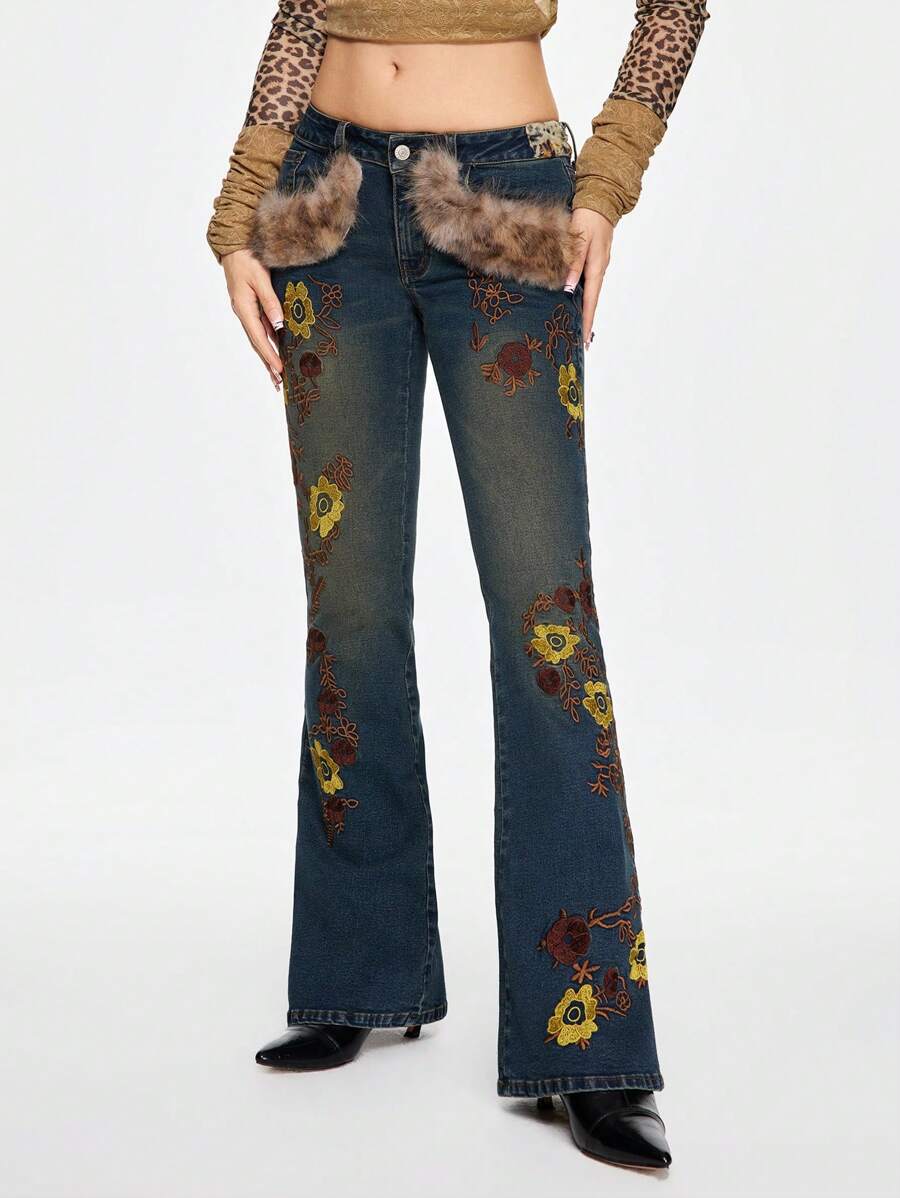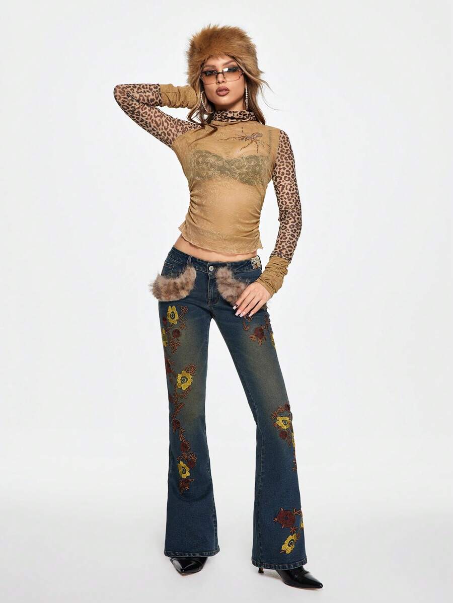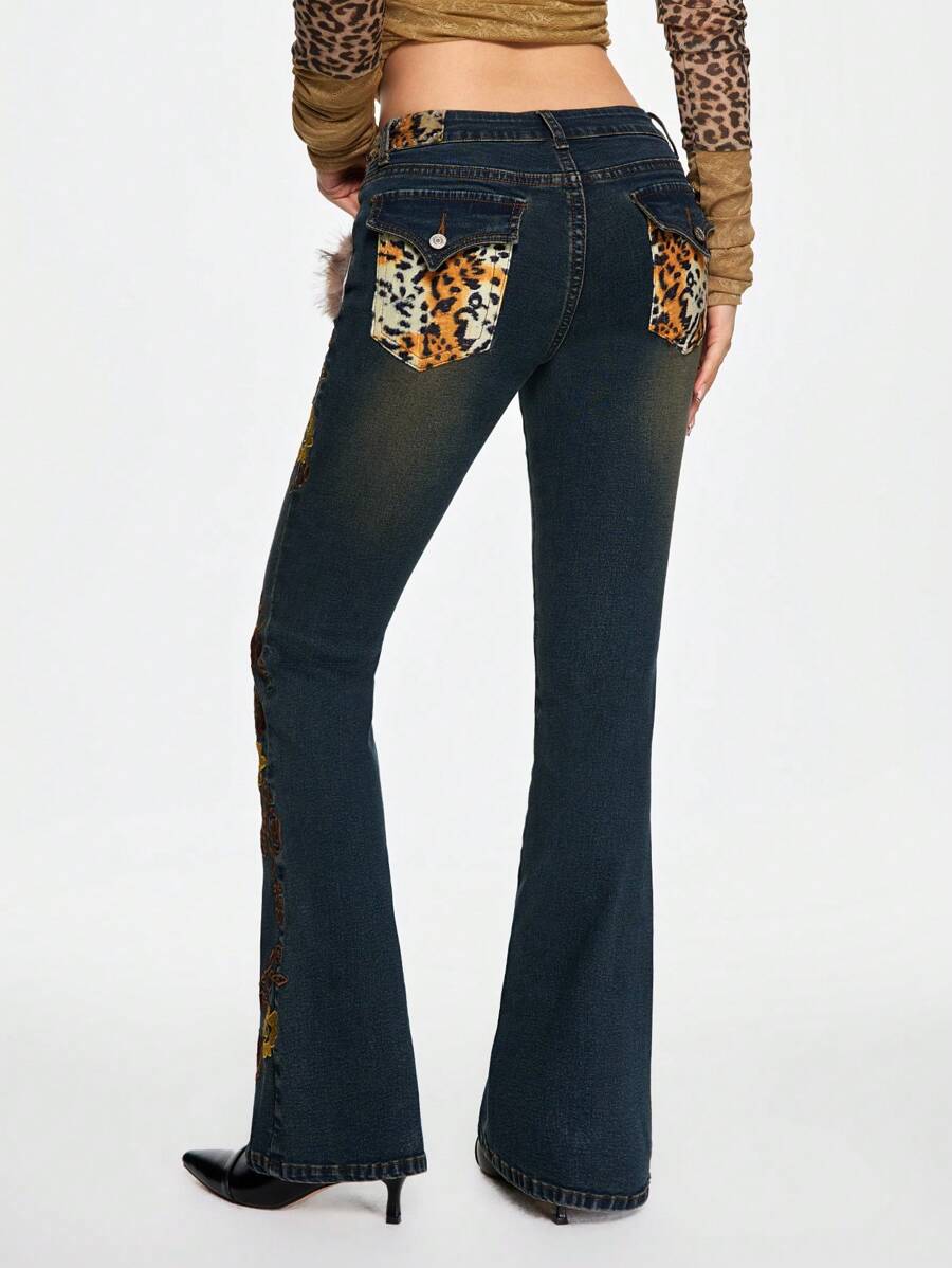 J-Fashion Jeans évasés à taille basse avec imprimé léopard doux, dans le style Gyaru Himekaji Y2K. Pour l'automne et l'hiver