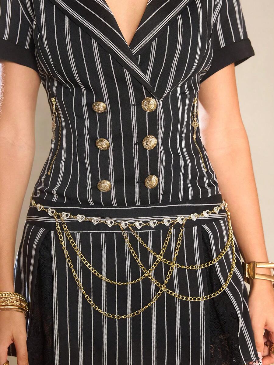 J-Fashion Robe mini à taille basse rayée noir et blanc, avec volant en dentelle, dans le style Himekaji Harajuku Y2K pour femmes