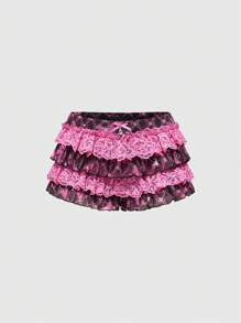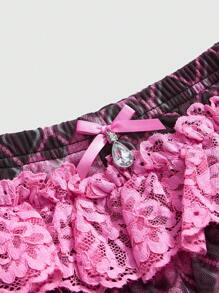 J-Fashion Short femme taille basse à carreaux avec ourlet à volants, style multicouche mesh, Harajuku Y2K