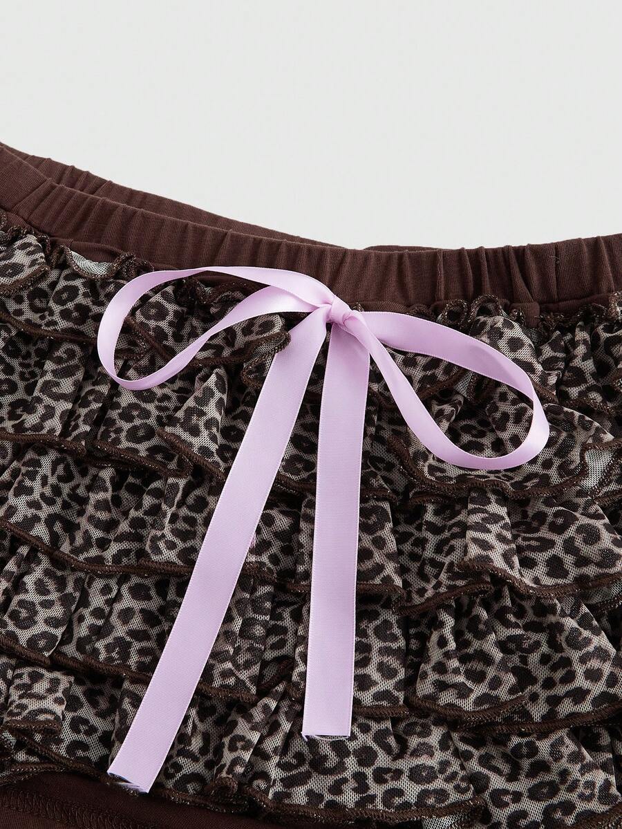 J-Fashion Jupe style Harajuku Y2K pour femmes avec imprimé léopard en maille, automne et hiver