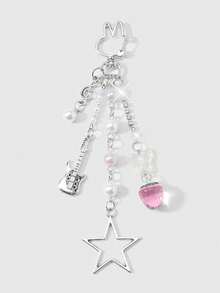 Kawaii 1 pièce Chaîne en argent élégante et polyvalente de haute qualité avec pendentif en résine en forme d'étoile, de fleur, de fraise, de pois et de nœud papillon. Accessoire DIY pour porte-clés, sac à main. Convient pour le port quotidien des femmes/filles, cadeau pour les fêtes