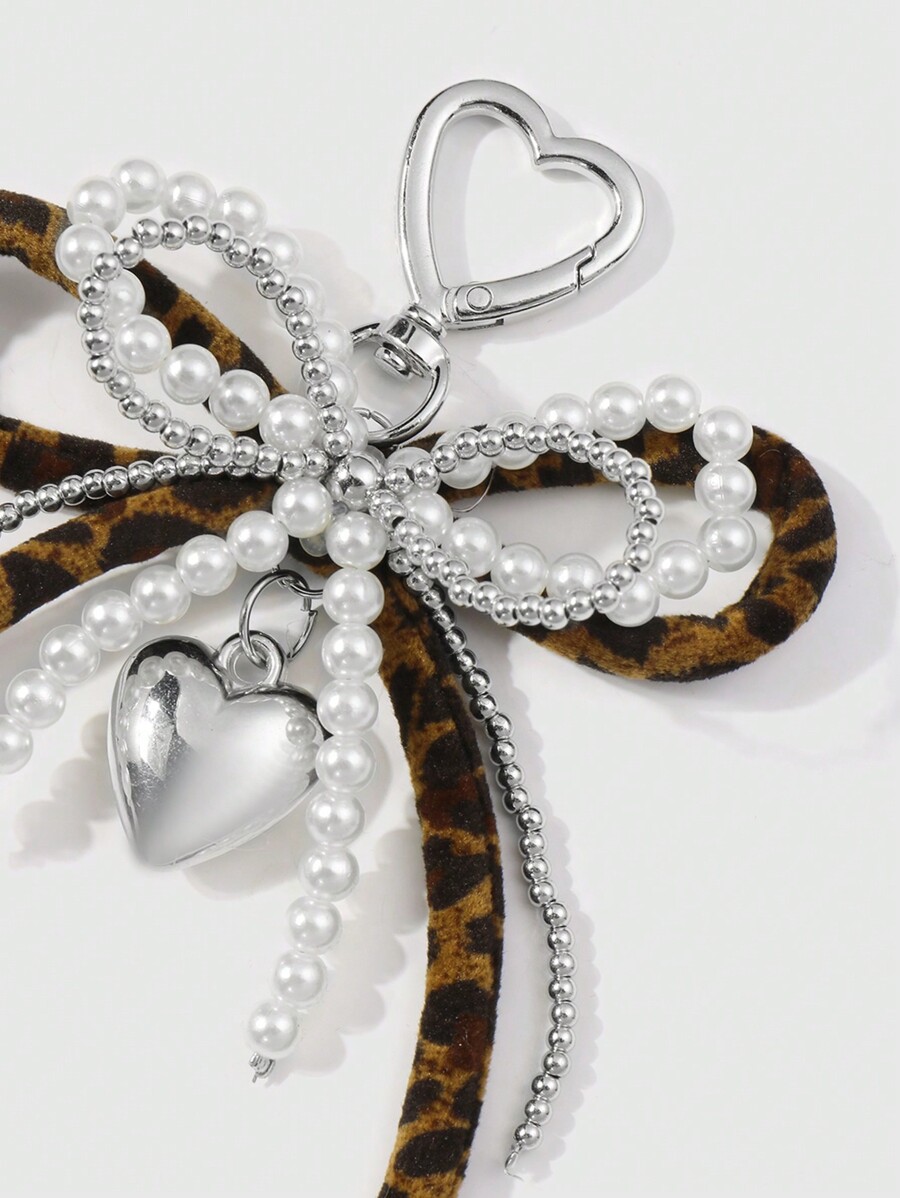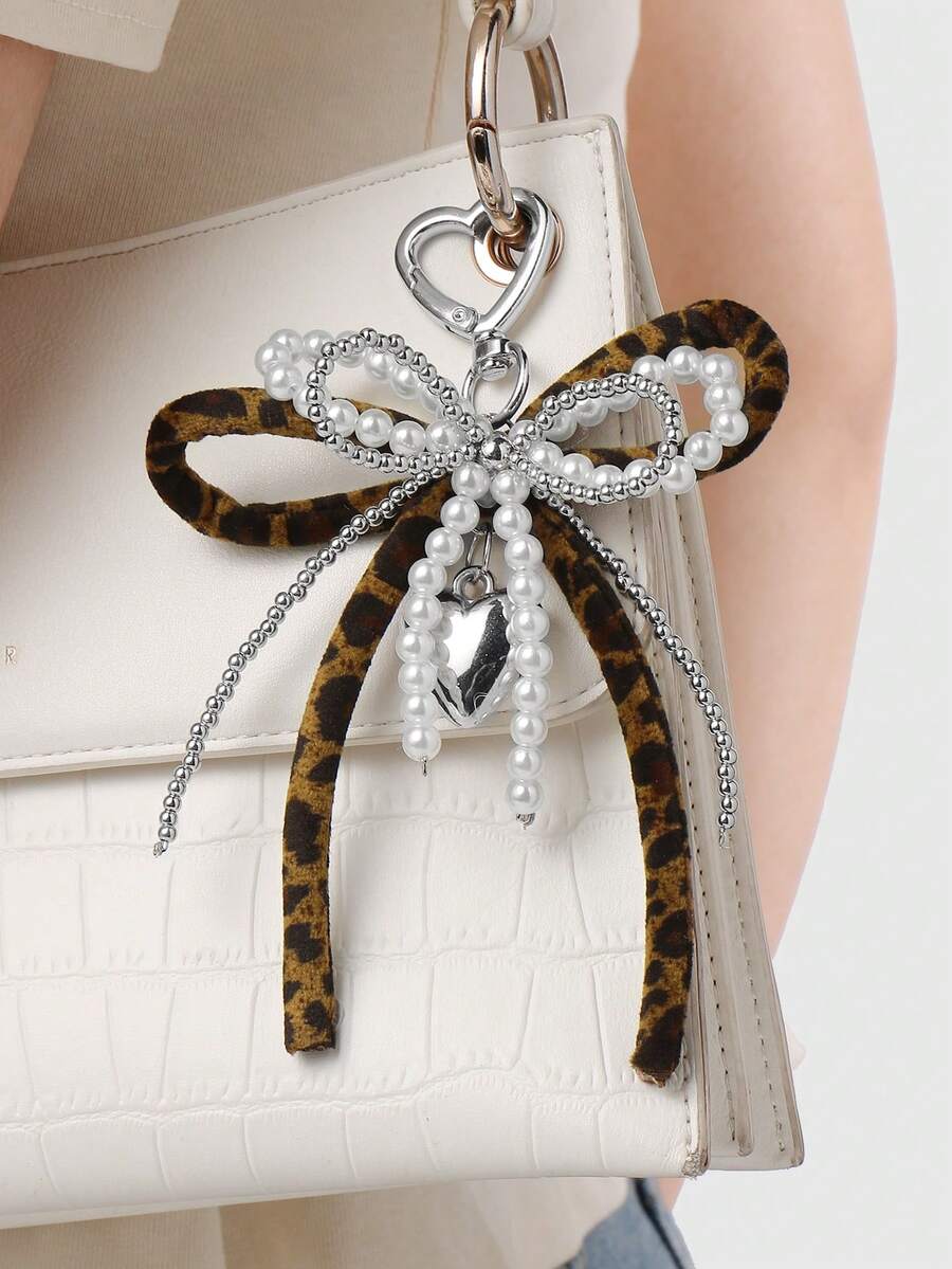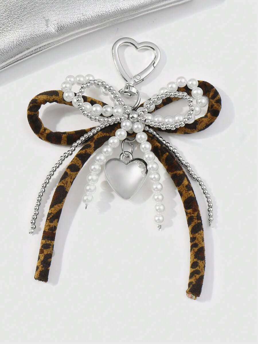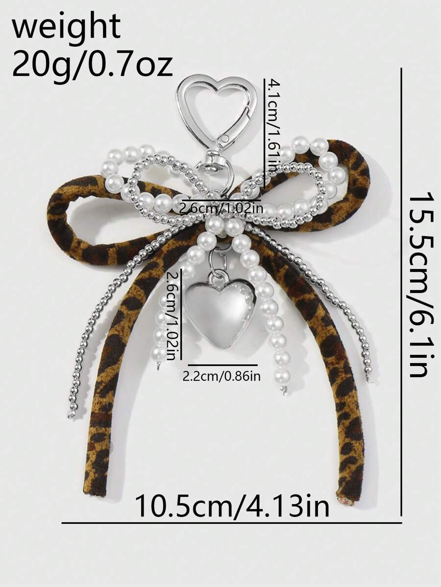 Kawaii 1 pièce Porte-clés mode fait main à plusieurs couches avec perle d'imitation, imprimé léopard, nœud papillon et pendentif en forme de cœur. Accessoire polyvalent et élégant, idéal pour les femmes, cadeau de la Saint-Valentin