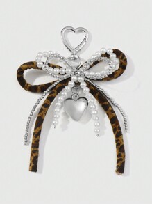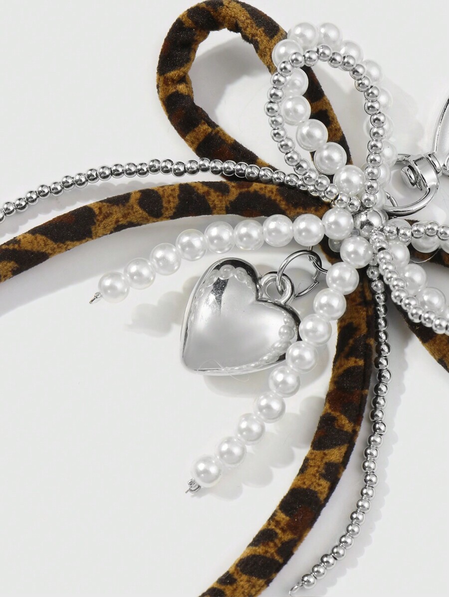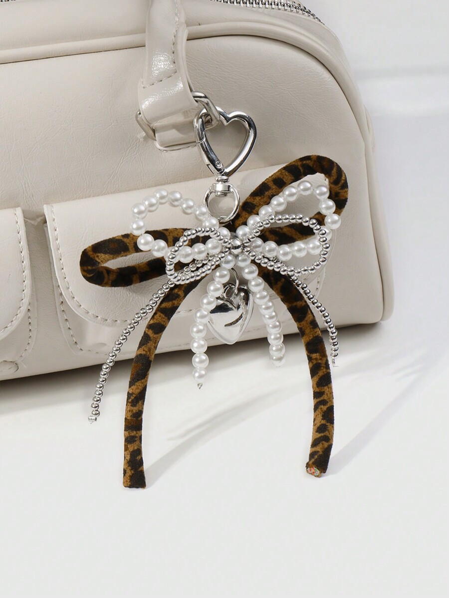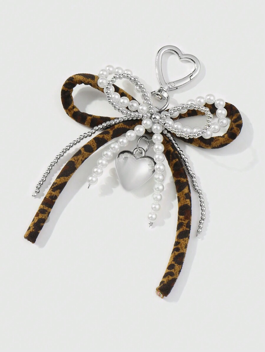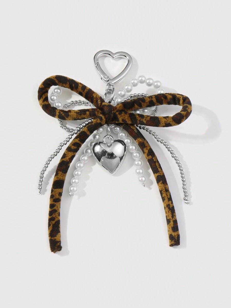 Kawaii 1 pièce Porte-clés mode fait main à plusieurs couches avec perle d'imitation, imprimé léopard, nœud papillon et pendentif en forme de cœur. Accessoire polyvalent et élégant, idéal pour les femmes, cadeau de la Saint-Valentin